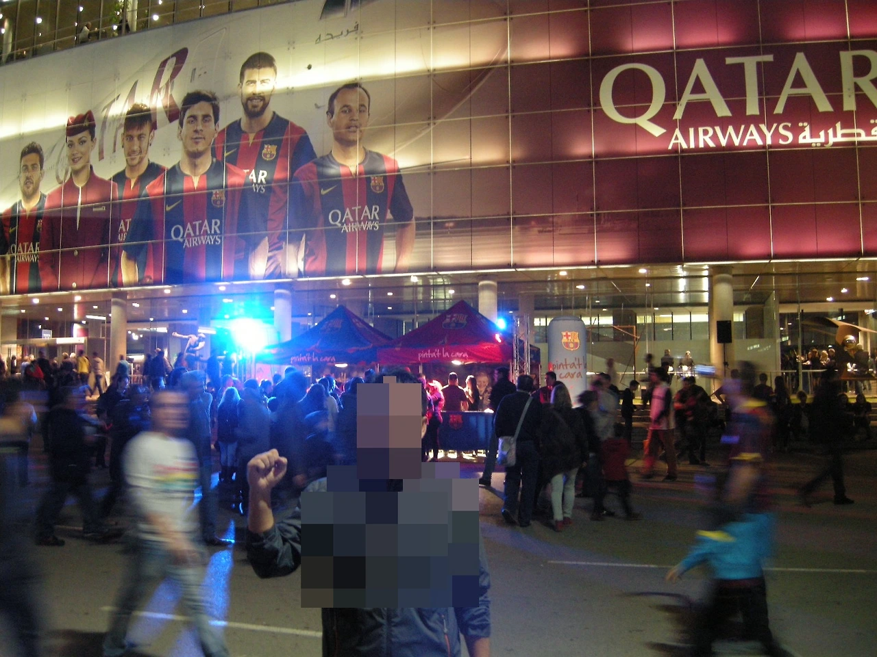 캄프 누가 가까워지고 있음을 택시 안에서도 금세 알 수 있었다. 바르셀로나 유니폼을 입고 캄프 누로 온 축구라면 사족을 못쓰는 순례단들이 물결처럼 움직인다. 한식당 아들이 그렇게 공손하게 두 손을 맞잡고 부탁했건만 택시 기사는 우리를 입장하는 곳에 내려주려고 한다. 티켓이 없음을 손짓, 발짓, 몸짓으로 여러 번 말하고 나서야 스페인 택시 운전수 아저씨는 왔던 길을 빙 돌아 매표소 가까운 곳에 우리를 내려주었다. 우리는 그때부터 절대 4명은 떨어지지 않겠다는 듯 서로서로 눈총을 쏘아대며 매표소에 도착했다. 눈치 반, 영어 조큼, 급한 맘에 한국말 좀 보태서 입장권을 발급받고 매시보다 더 빠른 걸음으로 걷기 시작했다. 발에 차이는 게 사람들이라 뛸 수도 없었다. 2014년 당시 FCB는 유니폼에 카타르 항공의 후원과 유니세프를 새겨넣었다.