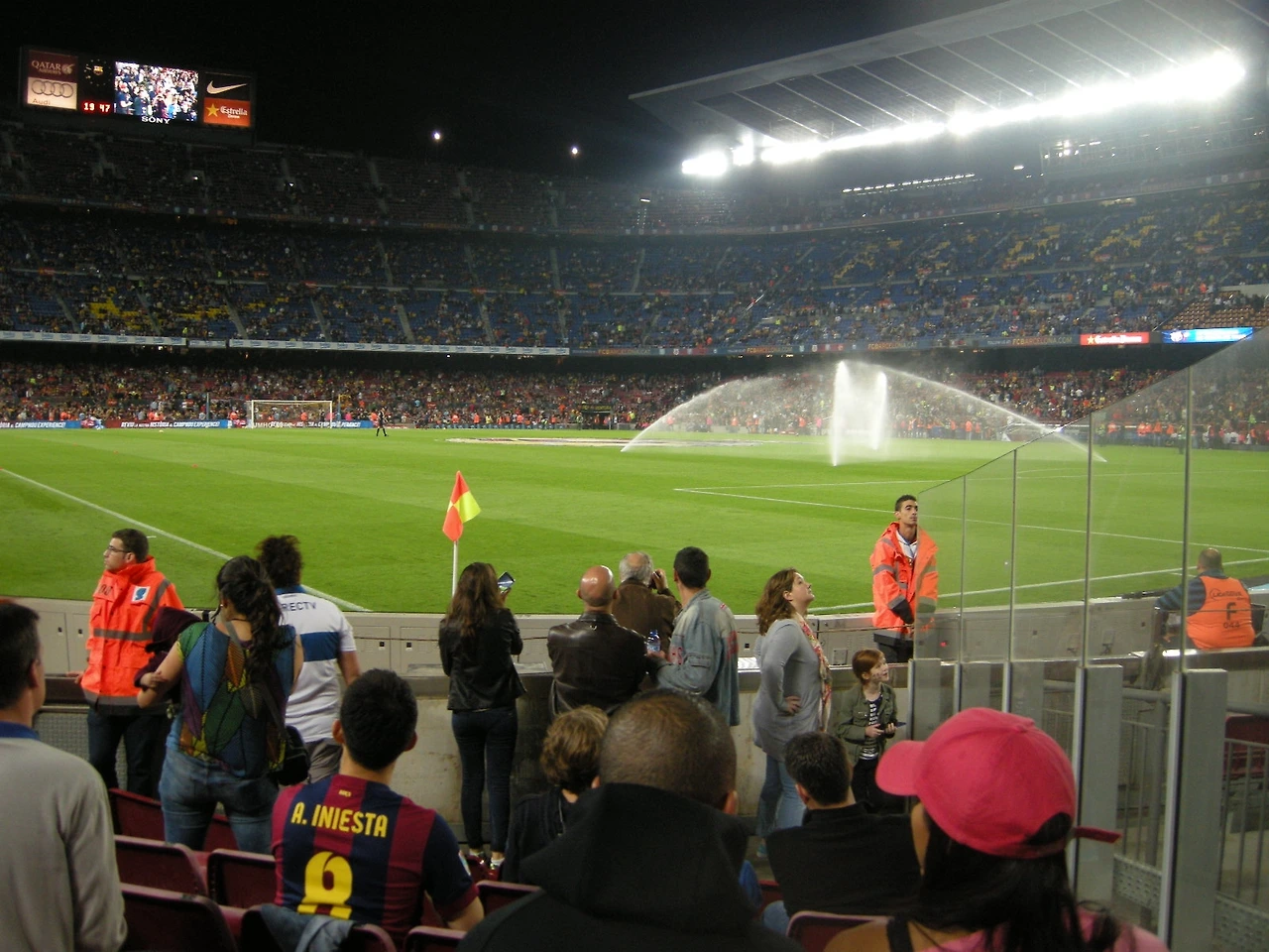 볼이 골이 되는 순간 캄프 누의 팬들이 일제히 일어나는 모습을.