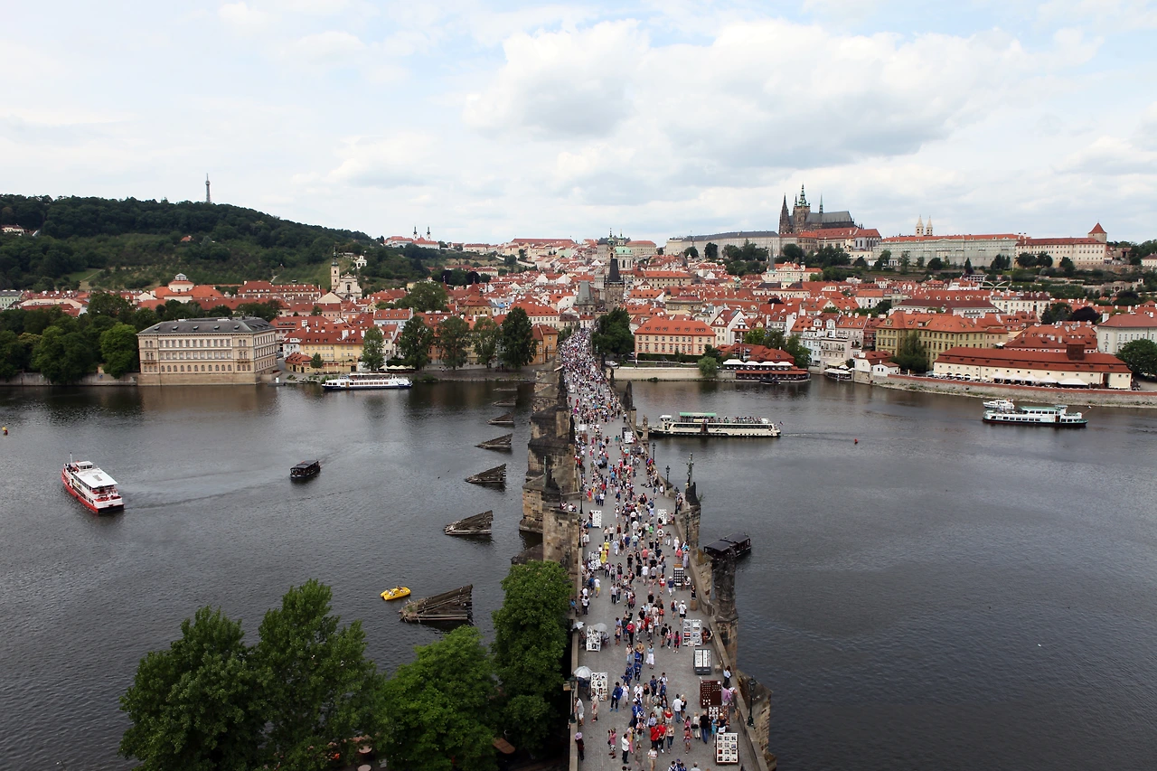 카를교 입구에는 양쪽에 탑이 하나씩 서 있습니다. 원래 카를교를 오가는 마차 통행료를 받던 곳이었지만 지금은 맘껏 프라하를 눈에 넣고픈 여행자들을 위한 전망대로 쓰입니다. 멀리 보이는 프라하 성채, 수많은 탑들과 붉은 지붕, 초록의 나무들 사이로 흐르는 블타바 강을 보여주기에 이만한 곳이 없습니다. 맘이 내키는 대로 왼쪽에 있는 탑으로 들어가 계단을 빙글빙글 돌아오릅니다. 탑의 꼭대기에 발을 들여놓는 순간 하늘과 바람이 와락 안아줍니다. 블타바를 사랑했던 음악가 스메타나의 악보를 연주하듯 강물이 흐르고 있습니다.