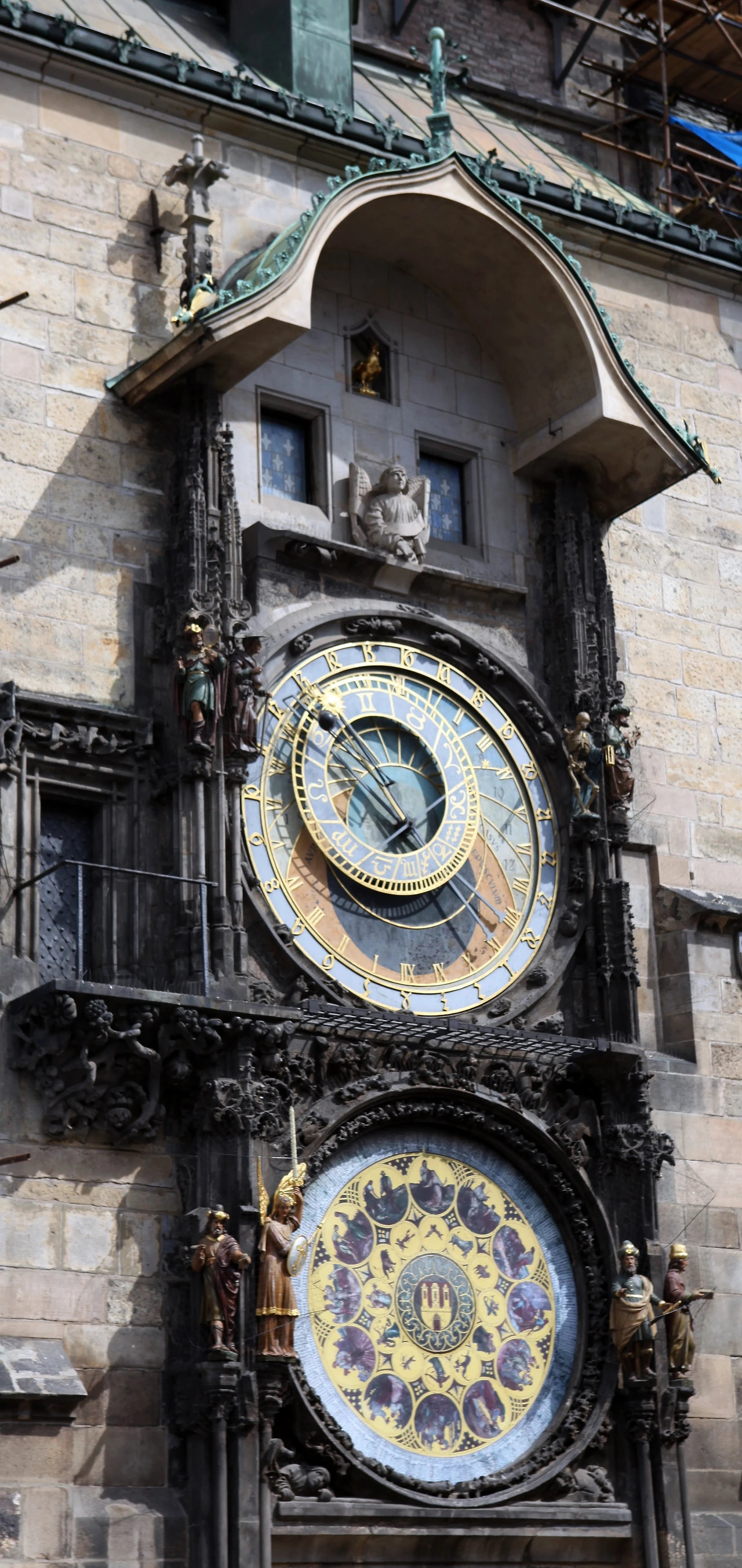 아침 일찍 천문시계가 째깍거리는 프라하 옛 시청광장을 거닐다 만난 치어 청소년들로 광장이 떠들썩합니다. 매시간 정시가 되면 울리는 시계 소리를 듣기 위해 기다리던 세계 각국의 여행자들을 응원하는 퍼포먼스일까요? 갑자기 덜 깬 잠이 확 달아나고 어깨가 들썩입니다. 보수 중이던 천문시계의 비계가 당시에는 눈에 많이 거슬렸습니다. 이제야 소중한 것일수록 더 자주 들여다보고 쓰다듬고 바로잡아야 한다는 것을 알게 되니 사진 속 푸른 비계도 꽤 괜찮아 보입니다. 천문시계가 카를교로 가야 할 시간이라고 등을 돌려세웁니다.