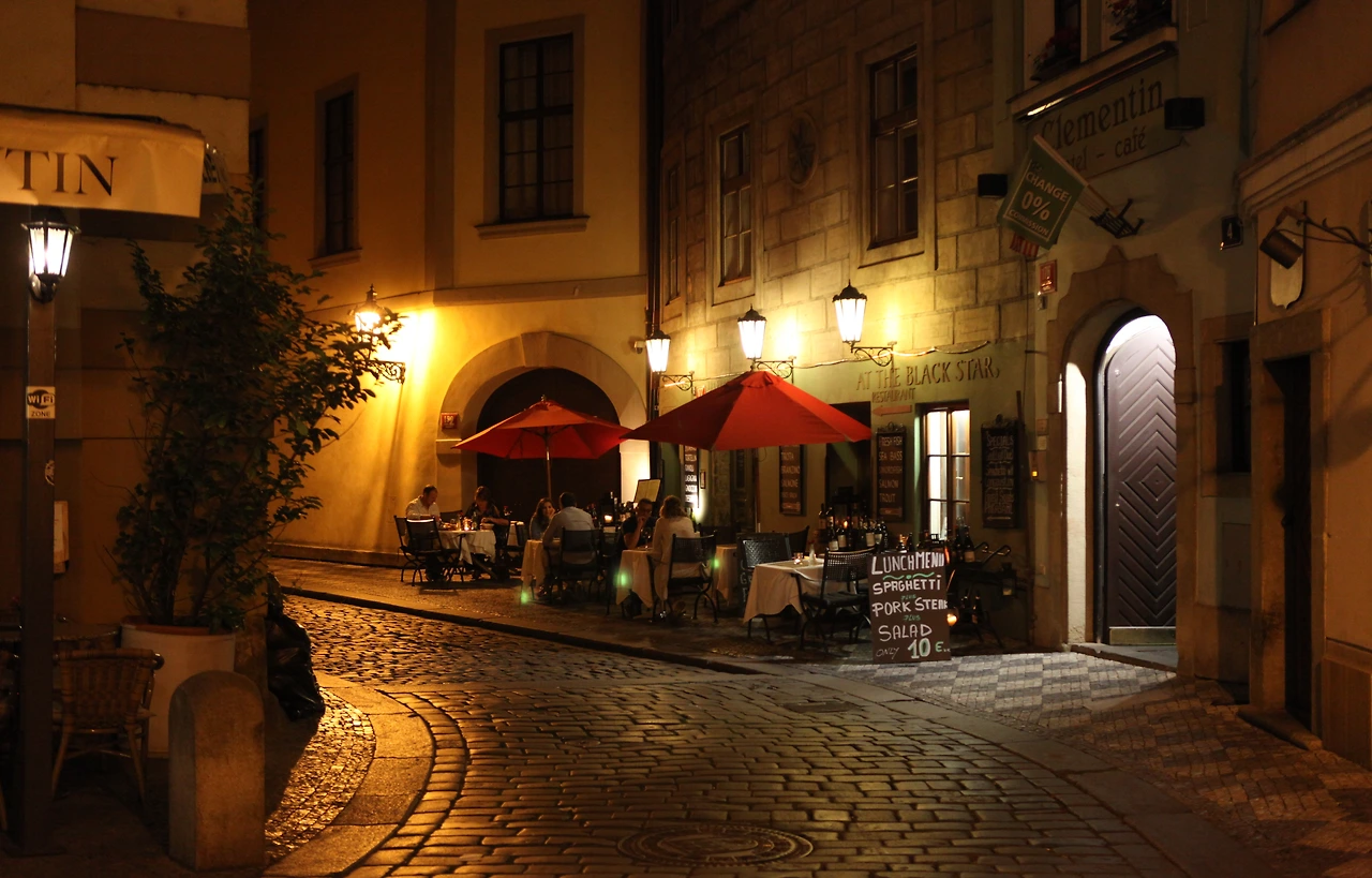 카를 4세는 그 시절에 비투스 성당을 어느 방향으로 앉혔을 때 지는 해가 성당을 황금빛으로 물들이는지 고민했다지요. 그는 해 질 무렵 카를교에서 프라하 성이 있는 언덕을 돌아보며 회심의 미소를 지었을 것 같습니다. 성당은 황금빛 저녁 햇살에 포근히 안겨 잠들 준비를 하고 있습니다. 아래에서 올려주는 불빛이 넓은 성채를 쓰다듬고 블타바 강물 속으로 던져진 노천 식당의 노란 조명은 길게 물속에 흔들리며 잠깁니다. 어둠이 짙어지면 하늘은 무채색으로 뒤로 물러나고 노란 조명들이 대지와 강물 속에서 별빛으로 떠오릅니다.