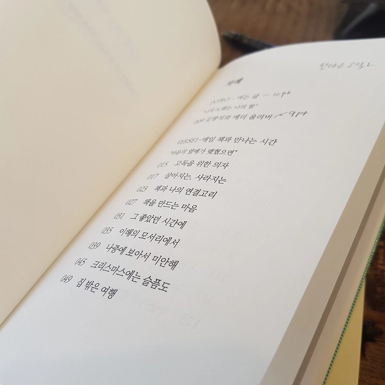 글도 다시 읽어 보니 매끄럽지 않은 부분이 많다. 카페에 올렸던 글들을 다듬는다고 했지만 10주 차 내에 가제본을 만든다는 목표에만 집중했던 것 같다. 그 10주의 시간 동안에도 꾸준히 글을 붙들고 있었던 것이 아니었다.