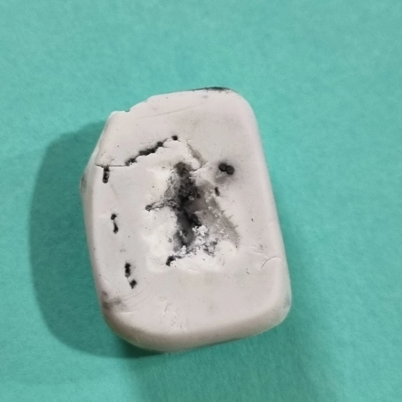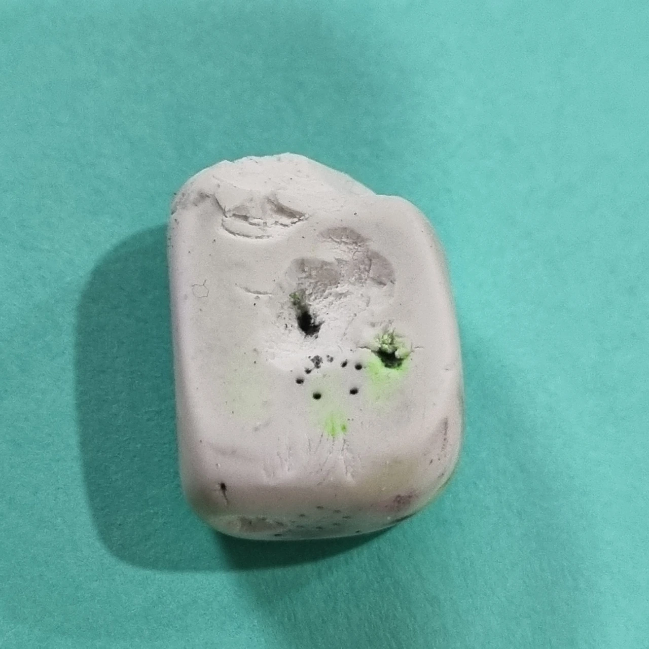 한 쪽면에서는 라이언 일병이 벙커로 사용했을 법한 구멍이 가운데 깊이 파여있다. 아마 수업시간에 열심히 연필로 파낸 것 같다. 다른 쪽면에는 아주 뾰족한 연필심으로 찍어놓은 작은 점들과 형광펜의 흔적이 보인다. 가장자리는 손톱으로 뜯어낸 듯한(설마... 치아로 뜯어낸 것은 아니길 바라는) 자국들도 보인다.