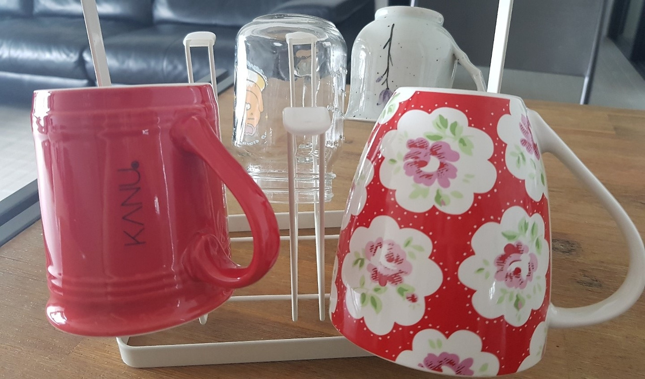 함께 사용하는 공간에 씻고 말려 두기가 미안할 정도로 양이 늘어서 컵 정리대를 사서 따로 두었다.