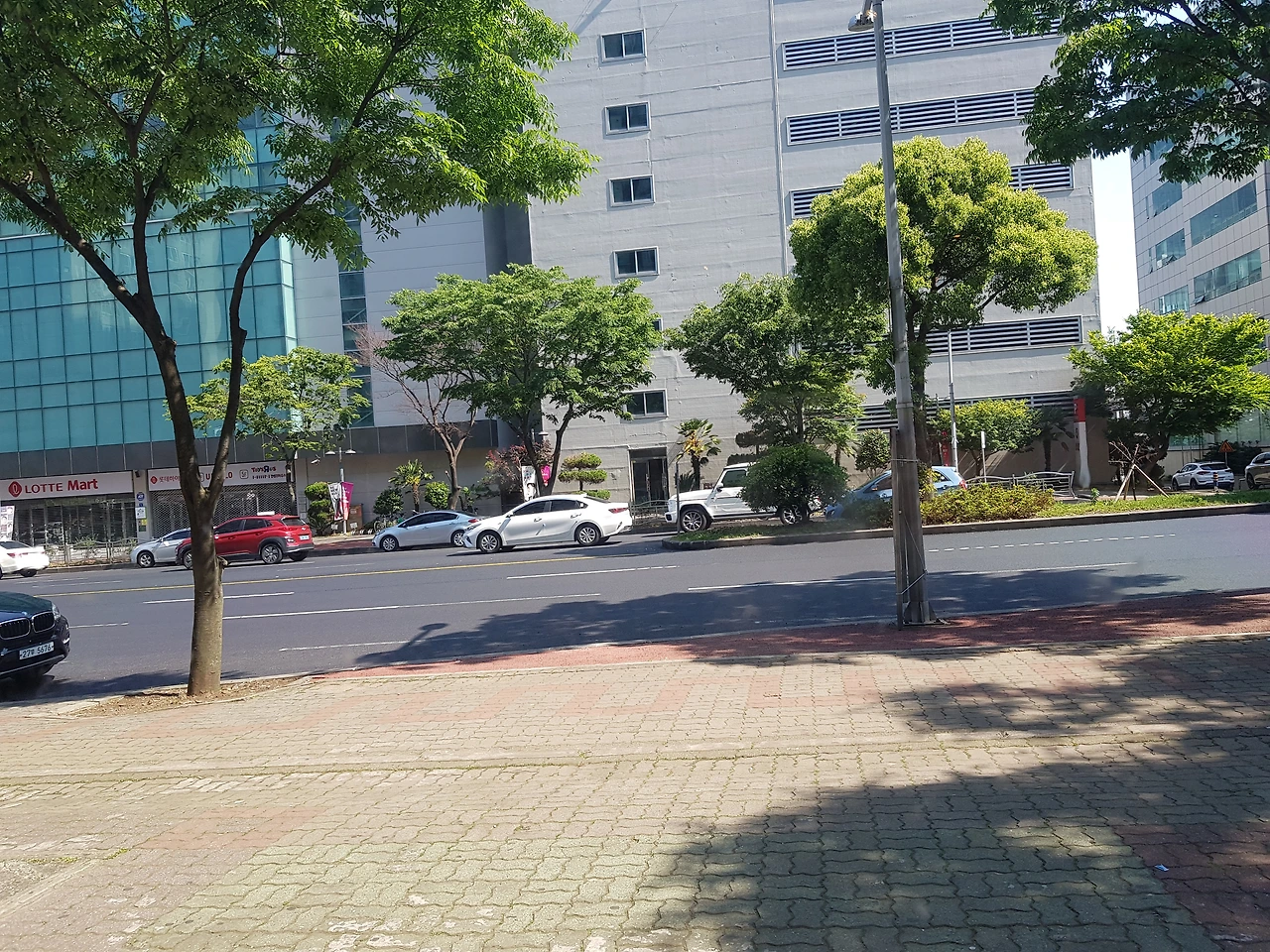 오가는 사람들 , 자동차, 커피만큼 진하고 찐득하게 느껴지는 새로 깔린 아스팔트.