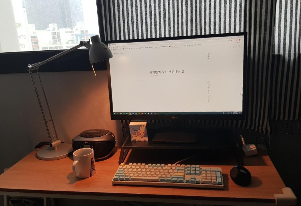 그런데 이 공간을 가지게 되니 알았습니다. 자기만의 방이 있었다면 일과 가사에 힘들어서 아무것도 하기 싫은 시간 사이에도 나만의 시간을 가졌을 거라는 걸. 어쩌면 시간이 없었던 것이 아니라 '공간'이 없었기 때문에 시간이 있어도 그 시간의 나만의 시간으로 가지지 못했던 걸. 제가 이 공간을 좀 더 일찍 가졌더라면 '내'가 없었던 그 많은 시간들 속에서도 틈틈이 '나'를 가꾸었을 것 같습니다.