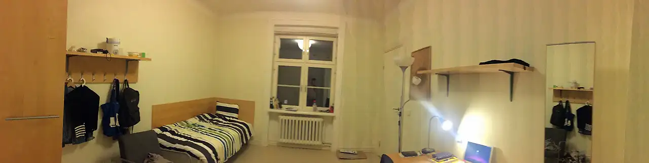한국에서 가져 온 서양미술사, 정치적 평등에 관하여, 한국이 싫어서, 종의 기원, 이곳 저곳에서 사 온 엽서, 악세사리는 '내 방 속 방' 근처 창틀에 두고, 주요 서류들은 너무 높이 위치해 있어 잘 사용하지 않게 되는 책상 위 선반에, 세탁 세제와 비상 상비약, 집 열쇠는 옷장 옆 선반에 두었다. 옷장은 한국에서 쓰던 것의 삼분의 일 크기다. 옷이 많지 않은 편임에도 가져온 옷을 겨우 다 걸고 겉옷들은 옷장 옆 선반 밑에 걸어 두었다. 옷장 앞에는 신발들을 늘어 놓았고 옷장 반대편 벽에는 전신 거울이 보인다. 엄마 아빠가 없어도 내 방 곳곳이 내 생활에 맞춘 체계를 갖추어 가는 것이 신기하다. 그러나 공간적 배경이 달라도 그 안에 살아가는 나라는 사람의 핵은 변하지 않아서 결국 한국에서 지낼 때와 같은 상황이 자주 일어난다. 조금만 긴장을 풀면 방은 금세 지저분해진다. 제자리에 물건을 두지 않아 이리 저리 헤매고 옷은 벗은 뒤에 바로 걸어 두지 않아 쌓이고 만다.