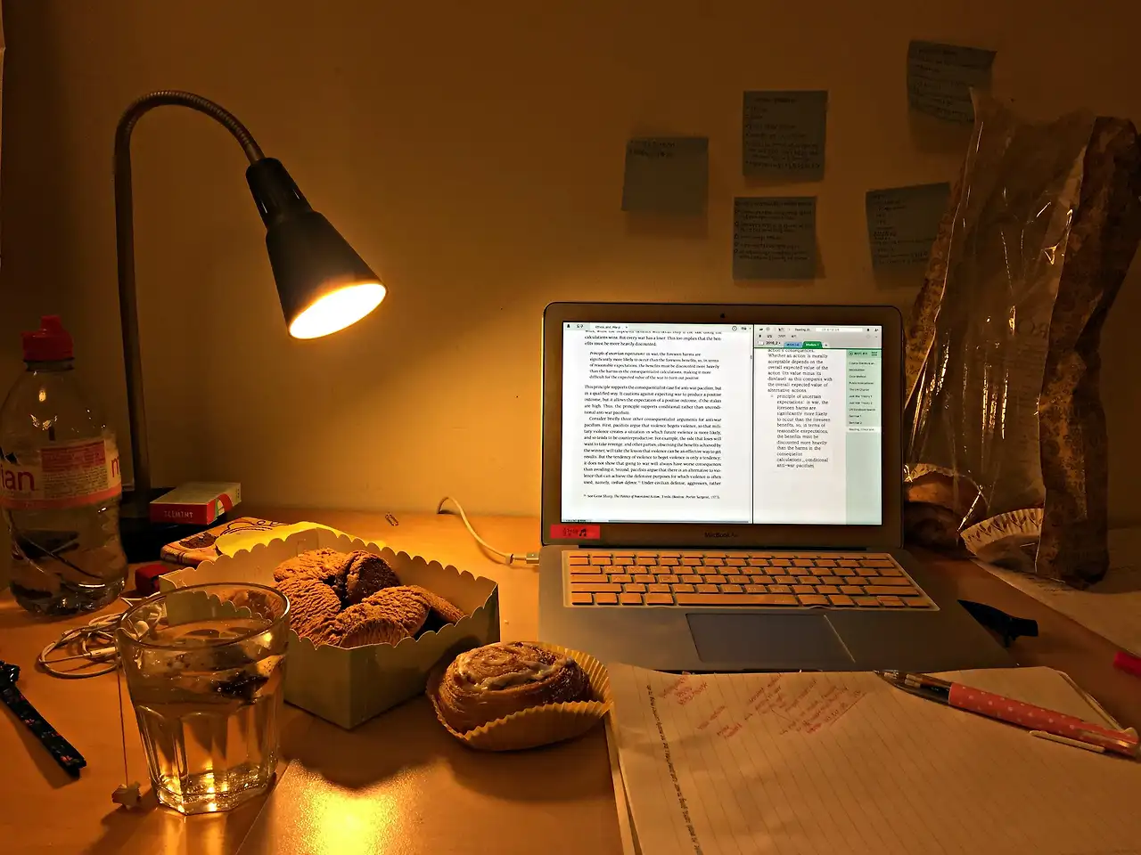 책상은 '내 방 속 내 방' 지역에서 다소 떨어져 있다. 떨어져 있다고 해서 아주 먼 것은 물론 아니다. 모든 것은 한 방에 들어 있으니까. 그러나 한국 내 방보다 훨씬 크다. 침구만 구비되어 있다면 과장을 조금 보태 열 명은 거뜬히 재울 수 있을 것 같다. 아무튼 책상이 있는 지역은 러그가 바닥을 덮지 않아서 특히 춥다. 책상에 앉아서 공부를 잘 안하는 것은 추워서 그런 거다. 의자의 높낮이를 조절할 수 있음에도 책상 앞에 앉을 때마다 허리가 아프다. 역시 책상과 잘 안 맞는 것 같다. 책상 상판은 방 안의 전반적인 분위기와 마찬가지로 베이지 톤의 나무 재질인데 넓지 않다. 노트북을 놓고서 동시에 필기라도 하고자 하면 금세 정신이 없어진다. 왼쪽엔 스탠드가, 정면엔 노트북이, 노트북 앞쪽과 오른쪽엔 종이 쪼가리들과 책들이 어수선하다. 책상 앞 벽에는 할 일과 마음에 드는 문구를 적어 둔 포스트잇들이 붙어 있다. 포스트잇 접착 부분이 힘을 잃어 가고 있어 곧 떨어질 것 같으니 테이프로 덧대 주어야겠다.