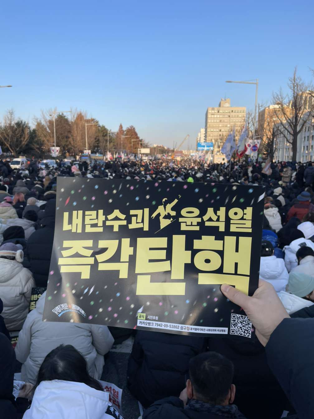 그때 잠든 게 세상에 미안하기도 하고, 반성이라고는 1도 없는 뻔뻔한 대국민 담화에 너무나 화가 나서 나도 잠깐이라도 힘을 보태자는 생각에 탄핵 당일 국회로 향했다.