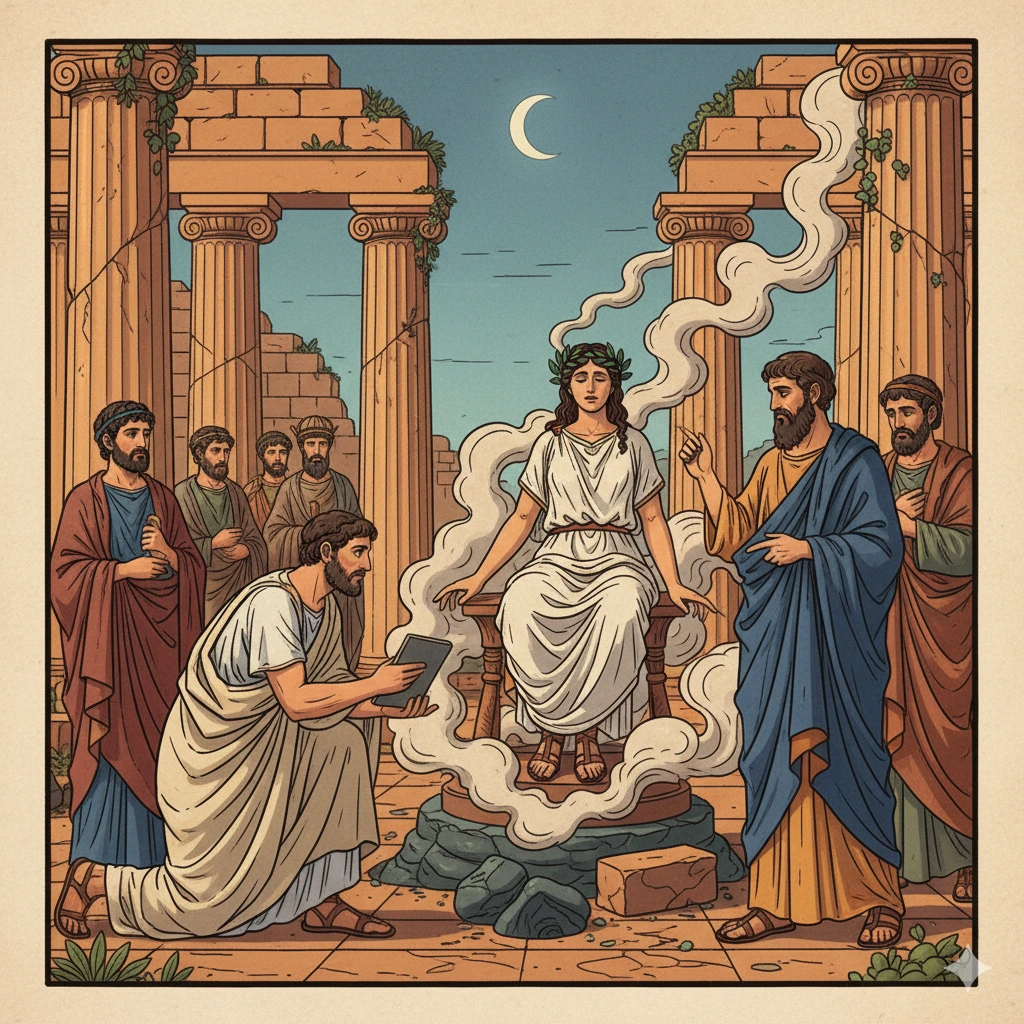 이때 오직 델포이 신전만이 정확한 답을 내놓았고, 이에 크로이소스는 델포이에 신탁을 요청한다.