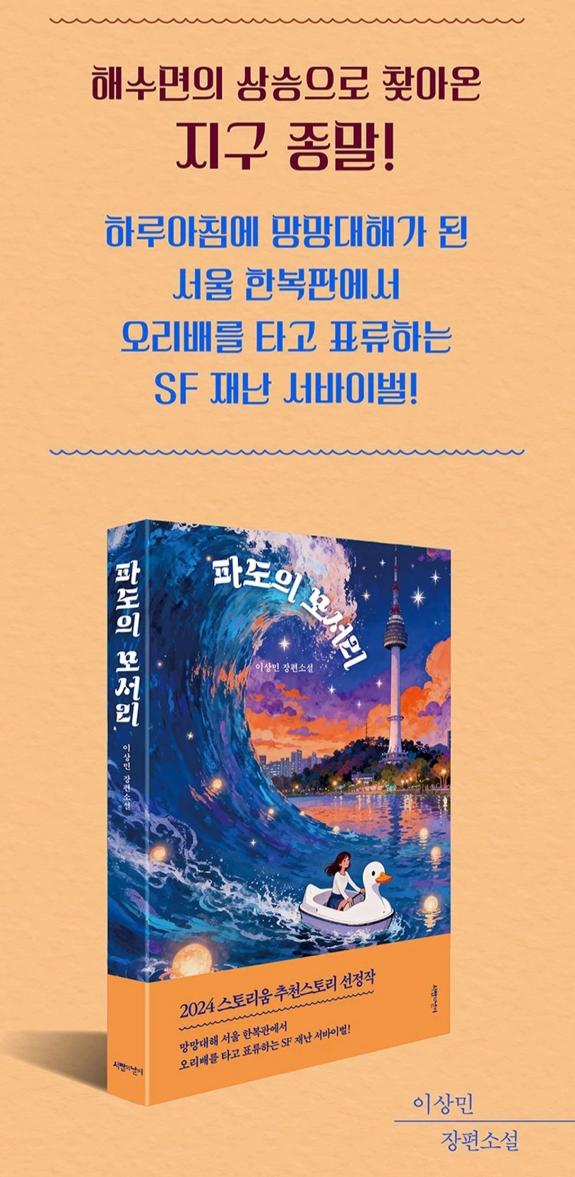 《파도의 모서리》는 거대한 해일 이후 물에 잠긴 서울을 배경으로, 인류의 종말과 생존, 그리고 인간성의 경계를 서늘하게 응시하는 재난 SF이자 철학적 생존기다. 작품은 “인류의 절반이 사라졌다”는 문장으로 시작해, 독자를 단숨에 멸망 이후의 세계로 끌어들인다. 그러나 이 소설이 택하는 방향은 단순한 재난 서사도, 스펙터클의 나열도 아니다. 오히려 파멸 이후에 남은 ‘인간의 마음’을 집요하게 탐구한다.