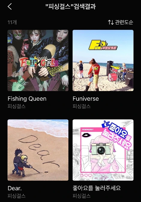 관객들을 '낚아버리겠다'는 의미라는데, 어떤 기획사나 상업자본의 힘도 빌리지 않고 자체 결성한 '여성 펑크록 밴드'다. 한국 인디씬에서도 이런 조합은 매우 드문 케이스인 것 같다. 음악 앱에서 '피싱걸스'로 검색하면 2019년 정규 1집 <Fishing Queen>을 포함해 10여 개의 EP가 조회된다. 은근히 많은 곡을 창작하며 꾸준히 왕성한 활동력을 보이고 있다.
