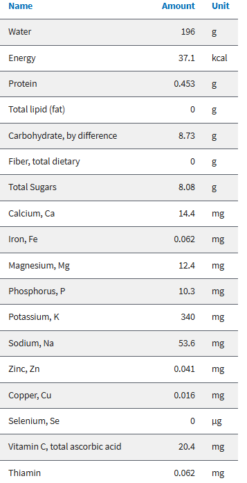 3) KDRIs 기준 가장 많은 비율의 영양소는 칼륨(포타슘)으로 KDRIs의 약 9.7% 입니다. 참고로 칼륨의 1일 충분섭취량은 3500mg (성인 기준)입니다. 칼륨 섭취량을 조절해야하는 신장질환자와 심장질환자는 코코넛 워터 섭취시 주의가 필요합니다. 또한 칼륨은 과다섭취를 주의해야하는 영양소이므로, 코코넛 워터의 섭취량을 조절해야하는 이유가 됩니다.