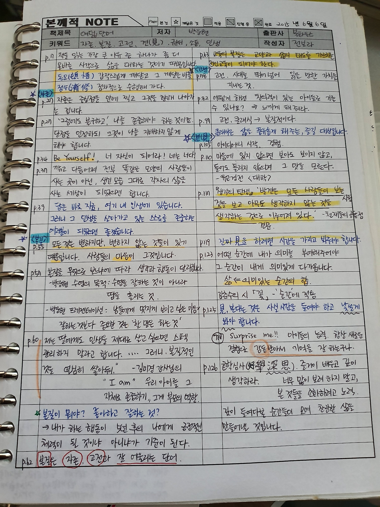 또 하나, 내 마음을 들여다보게 되었다. 시간을 들여 내 마음을 들여다보는 일 ‘why노트’ 쓰기였다. 화가 나면 ‘화가 어디에서 왔을까?’ 하고 내 마음에 관심을 가져준다. 스스로에게 관심을 가져주는 일 자체가 치유로 연결된다는 것을, 이제는 안다. 결국 내가 바로 서야 삶의 가치를 가질 수 있다.