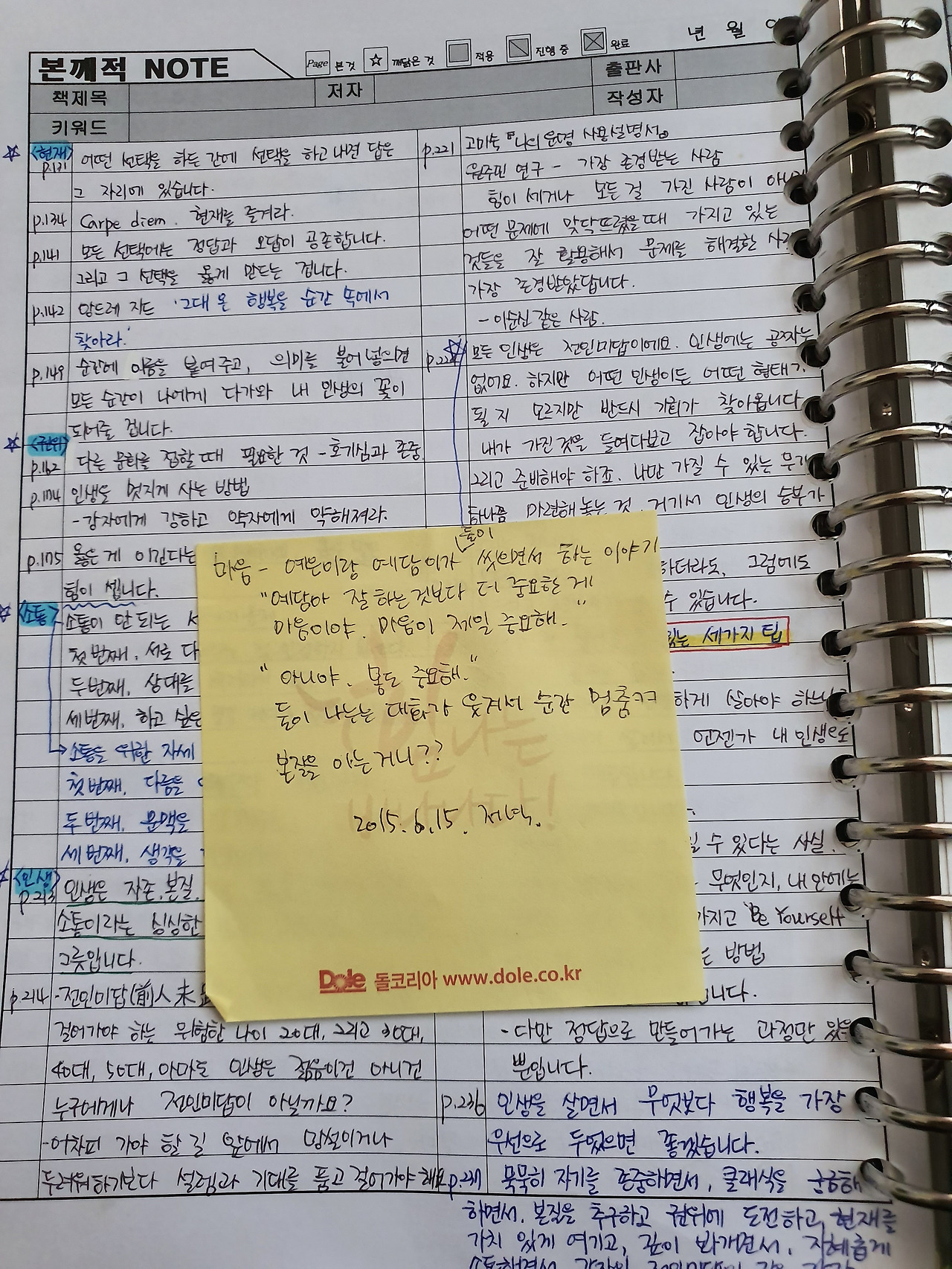 책에도 메모를 한다. 생명의 위대함과 함께 힘든 상황이 선물이 맞구나하는 깨달음을 얻는다. 육아라는 상황이 힘들지만, 분명 의미가 있고 나를 성장시키는 일임을 알아간다. 이과생이라서 잘 느끼지 못한다고 생각하며 살았다. 감성적이고, 감탄하는 글을 쓰는 사람을 부러워하며 나는 안 된다고 스스로 한계를 지으면서 말이다. 이과생이라서가 아니라 시간을 들여 마음으로 봐야 한다는 것을 비로소 책으로 깨닫고, 삶에서 경험하기 시작했다.