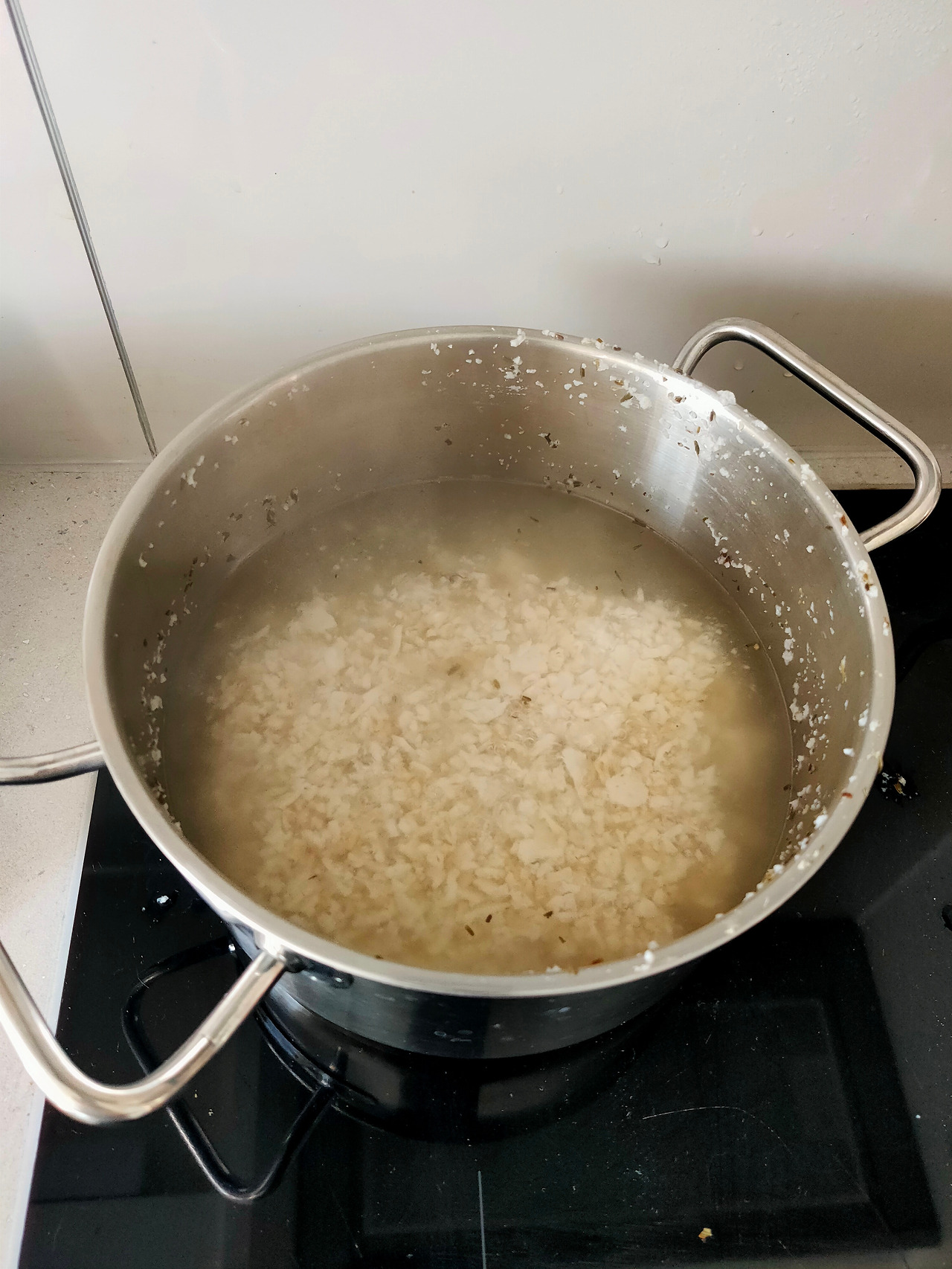 1. 냄비에 타르하나 200g과 물 3l, 치킨파우더 큐브 반개를 넣고 한 시간 동안 불린다(치킨파우더가 없다면 소금으로 간을 하면 된다).