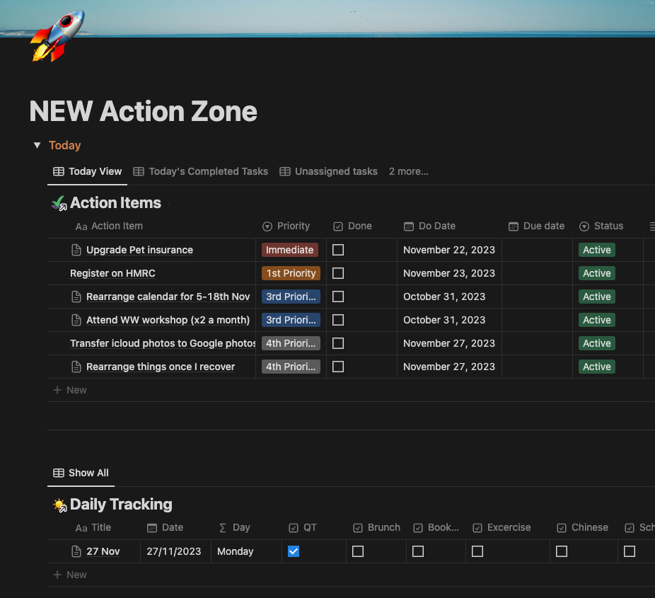 정리정돈이나 티켓 예매등 자질구레한 일들은 노션 To-do list에 올려두고 일단은 잊어버린다. 일단 중요한 일에 온전히 집중한 다음 나중에 정해진 시간에 소소한 일들은 몰아서 처리해 버린다.