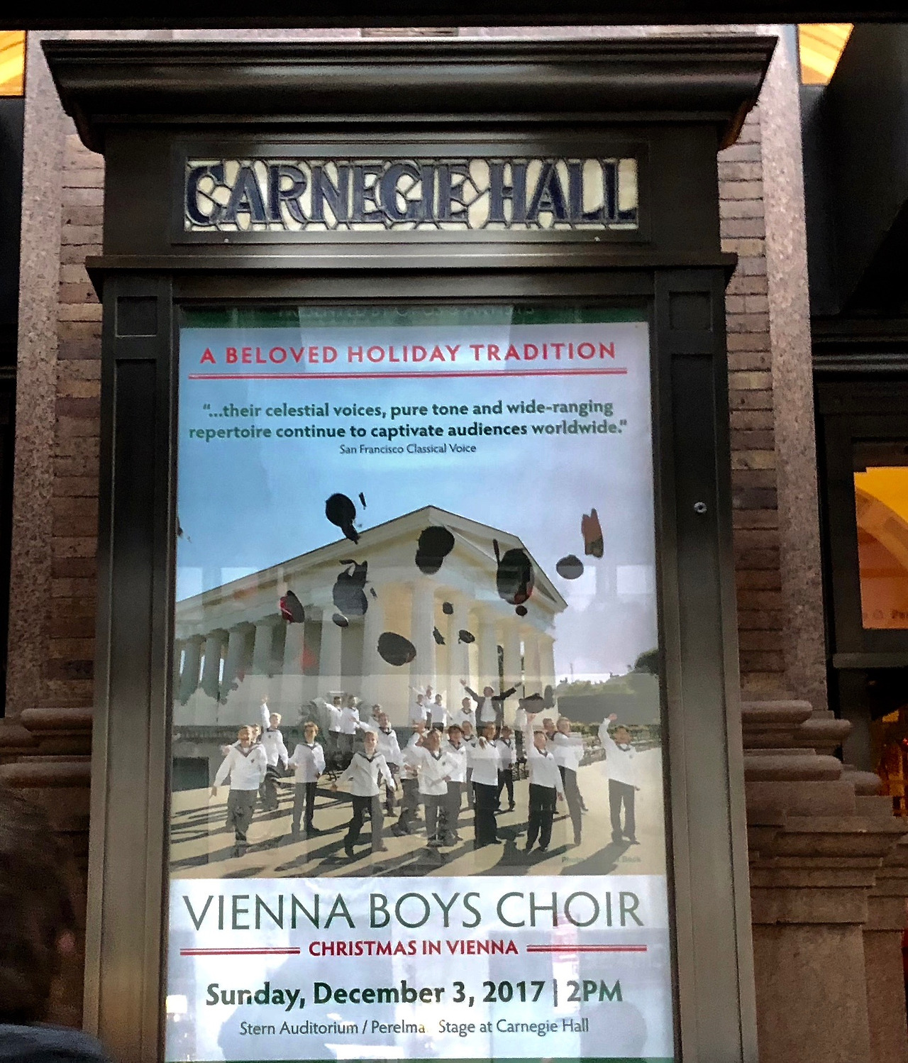 일요일 오후 2시 카네기 홀에서 아들과 함께 빈 소년 합창단 공연을 봤다. 고등학교 시절 사랑하던 빈 소년 합창단 공연을 뉴욕에서 보게 될 거라 미처 상상을 못 하였다. 파리나무 십자가 합창단과 함께 내가 사랑했던 합창단. 문득 고등학교 친구들도 그리워졌다. 어느 날 다른 나라에 와서 거꾸로 가는 삶을 살다 보니 친구들과 소식이 끊어지고 친구들 만난 지는 정말 오래전이다. 카네기 홀 무대에 25명의 소년이 올랐고 오스트리아, 독일, 캐나다, 일본, 캄보디아와 미국 등 국적이 다양했고 그 가운데 4명이 한국 출신이라 많이 놀랐고 세상이 과거와 얼마나 다른지 새삼 실감했다. 태어난 곳이 아닌 다른 나라에서 사는 이민자들이 많은 세상. 성가곡과 캐럴송을 불렀고 오래전 링컨 센터 앨리스 툴리 홀에서 카운터테너가 부른 곡도 있었다. 그날 난 세상에서 처음으로 카운터테너 목소리를 듣고 감명을 받았다. 아들은 링컨 센터 메트 오페라보다 더 좋다고 하고 엄마와 함께 행복한 일요일 오후를 보냈다. 징글벨, 기쁘다 구주 오셨네 등 귀에 익숙한 캐럴송도 들려왔다.