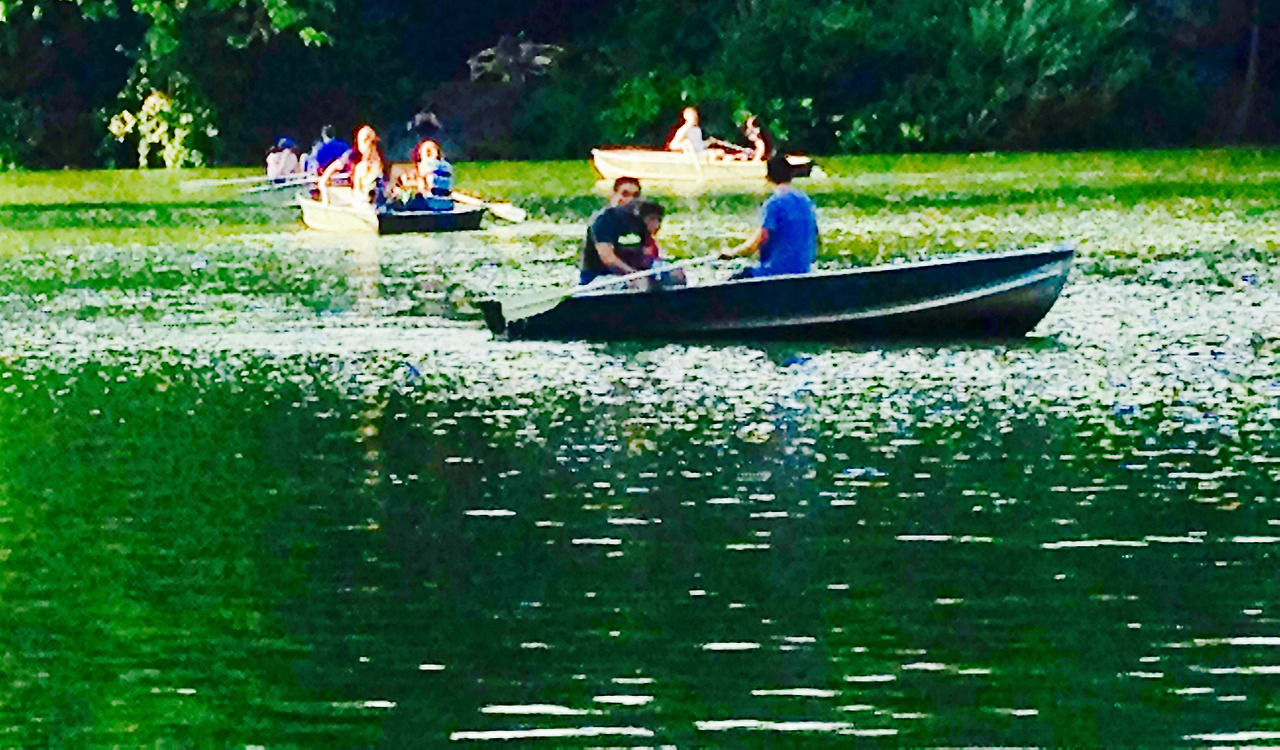 호수에서 보트를 타는 사람들을 보면
