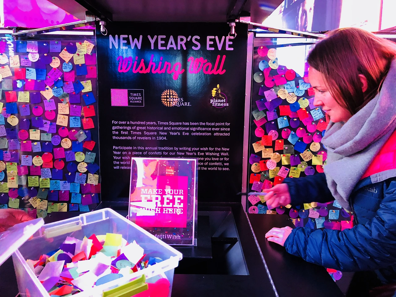 맨해튼 한복판 타임스퀘어에 새해 소망의 벽(New Year's Eve Wishing Wall)을 설치해 누구나 새해 소망을 형형색색의 작은 종이에 적어 벽에 붙이는 행사가 열리며 12월 1-29일 오전 11-저녁 8시 사이 방문하면 된다. 위치는 뮤지컬 할인 티켓을 판매하는 TKTS 타임 스퀘어 부근에 있고 방문하고 싶은 사람은 기억하면 좋고 소망을 적은 종이는 새해 이브 볼 드롭 카운트 행사 때 타임 스퀘어 하늘을 아름답게 수놓을 예정이다. 지난 월요일(12월 4일) 타임 스퀘어에 방문해 새해 소망의 벽에 붙은 종이를 읽어보았다. 건강, 행복, 평화, 4점 만점 학점, 열린 마음, 새로운 대통령, 친밀한 가족 관계 등. 모든 인간의 소망은 비슷비슷 한 가봐.