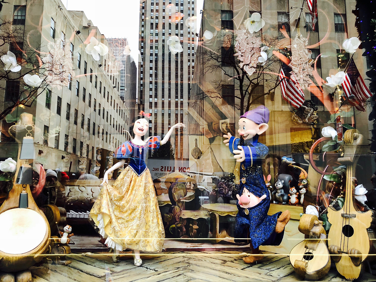 미드타운 5번가 삭스 앤 핍스 백화점 2017년 주제는 백설공주 동화였다. 잠시 동화나라로 여행을 떠나고. 그날 아침 라커 펠러 센터 크리스티 경매장에서 전시회 보고 커피 마시고 이곳에 와서 백설공주 쇼윈도를 구경했다. 밤에는 구경꾼이 더 많아 아주 복잡하고 낮에도 구경하는 게 쉽지 않아. 개인적으로 백화점 쇼윈도 보는 거 좋아해. 뉴욕에 겨울 여행 오면 백화점 쇼윈도 꼭 보길.
