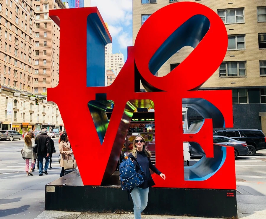 맨해튼 미드 타운 힐튼 호텔에서 몇 블록 떨어진 곳에 있는 퍼블릭 아트 "LOVE" 조각