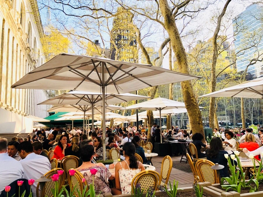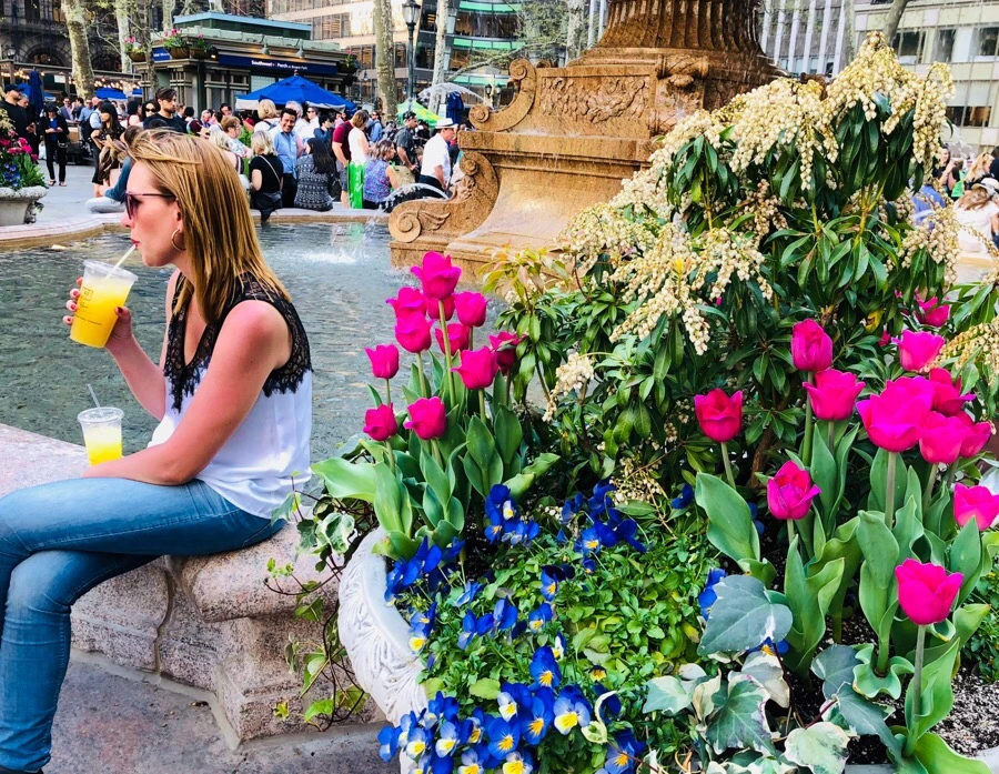 저녁 6시 브라이언트 파크에서 댄스파티가 열려 지하철을 타고 공원에 갔다. 분수가 흐르는 곳 옆에서 주스를 마시는 아가씨가 눈에 들어왔다. 무대에서 댄스파티 위해 공연을 하고 사람들은 춤을 추고 아름다운 뉴욕 공립 도서관과 엠파이어 스테이트 빌딩이 비치는 공원에서 회전목마를 타는 어린아이들도 보고, 체스를 두는 사람도 보고, 책과 신문을 읽는 사람들도 보고, 벤치에 누워 하늘을 바라보며 휴식하는 사람도 보고 이제 뉴욕 시 공원에서 여름 축제가 시작. 너무너무 많은 다양한 이벤트가 열리는 공원. 점점 더 많은 사람들도 복잡하겠다. 브라이언트 공원 카페에 손님 가득하고 영화처럼 예쁜 모습. 하늘도 바라보고 춤추는 수선화와 튤립 꽃도 보고 링컨 센터에 가려고 공원을 빠져나왔다.