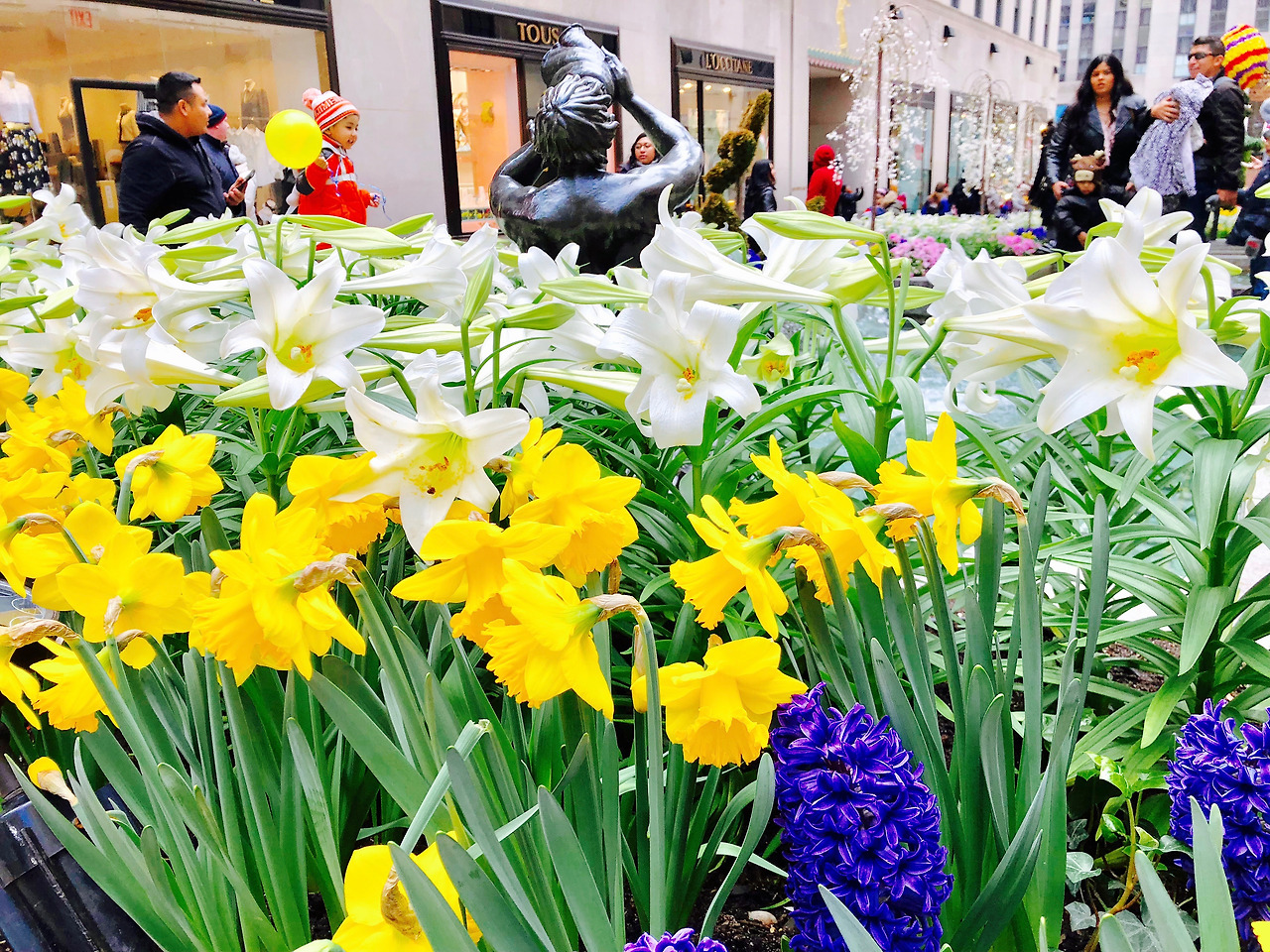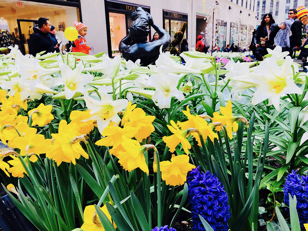 황금빛 수선화 꽃과 백합꽃 향기 가득해.