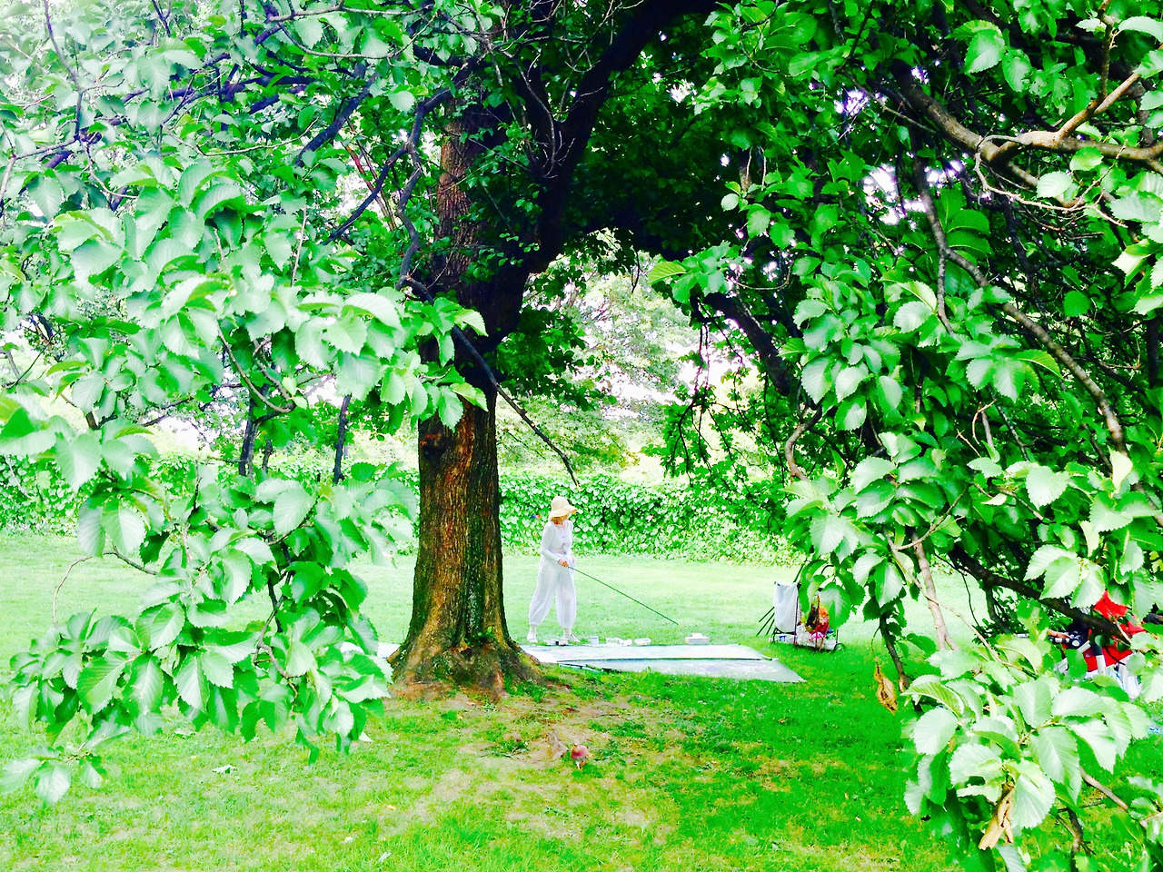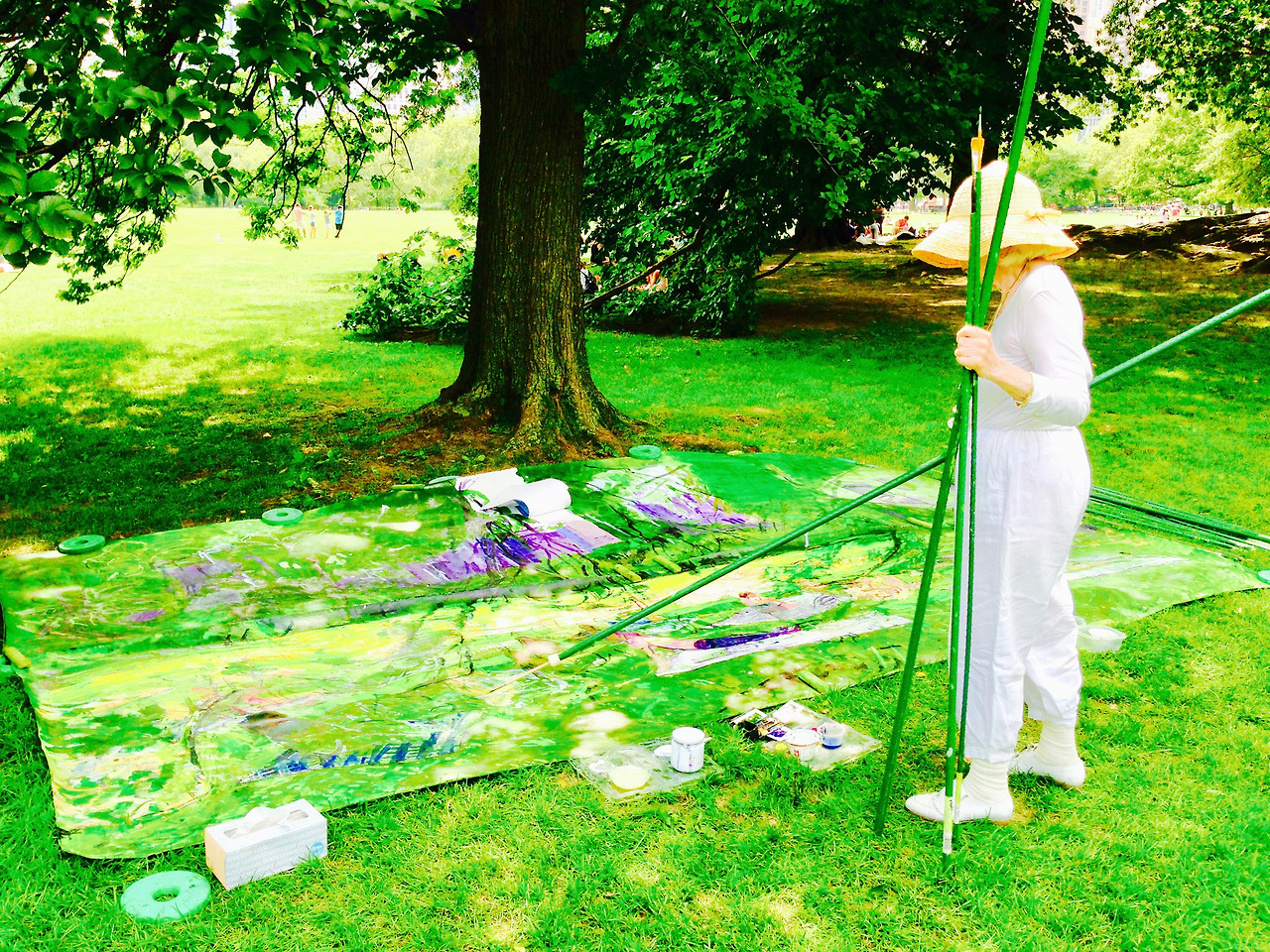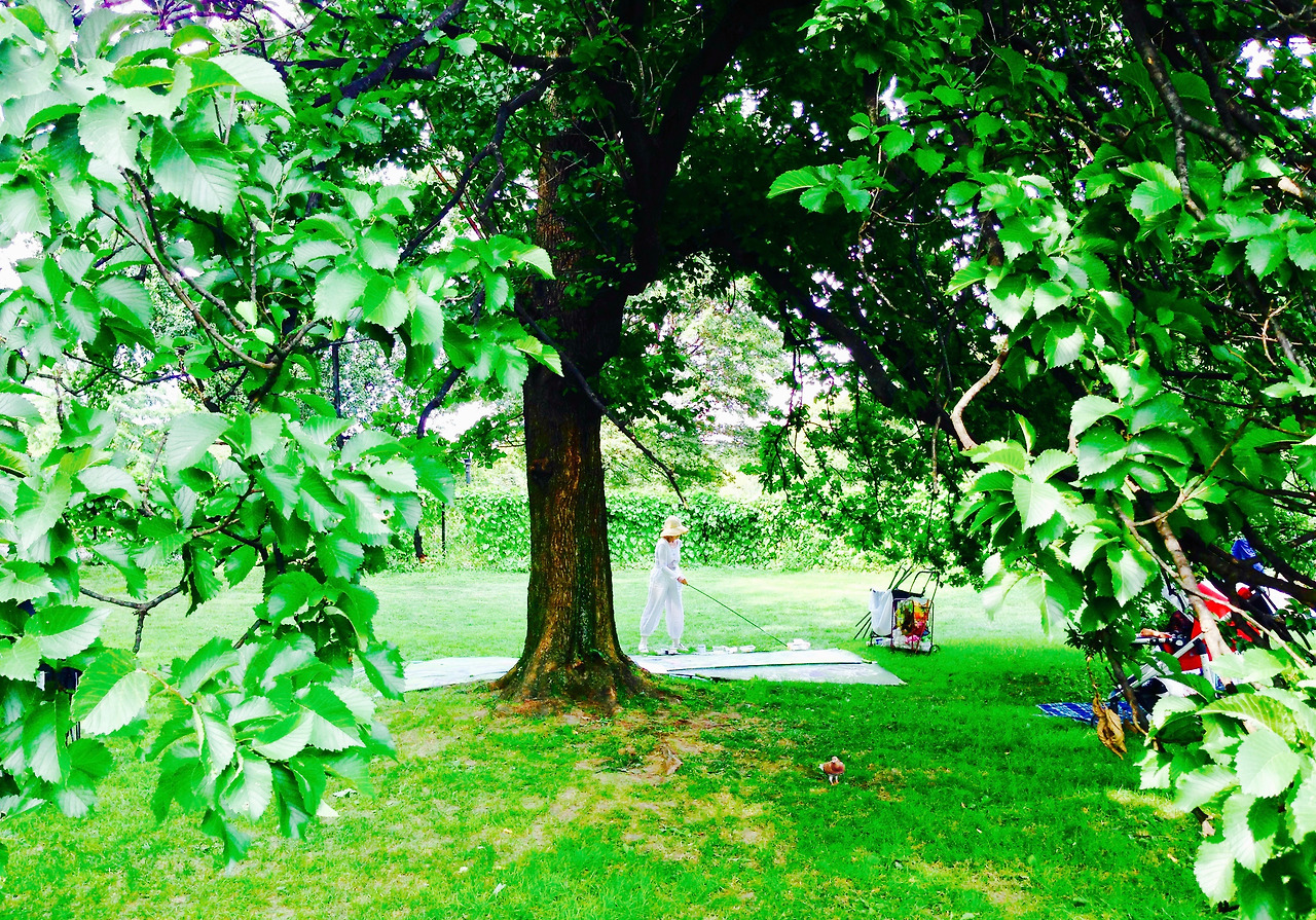 미국 아이오와 주에서 탄생 해 시카고에서 교육을 받은 화가가 가장 사랑하는 장소 가운데 하나가 바로 센트럴파크 쉽 메도우. 해마다 여름이면 큰 캔버스에 붓으로 뉴요커의 모습을 담는다. 인터넷에 그분이 1930/31년생으로 나오는데 그럼 거의 90세에 가까워져 가는데 의자 하나 없이 서서 그림을 그려. 믿어지지 않을 정도로 건강한 모습으로 작품 활동을 하는 아름다운 화가. 마치 책에서 읽던 도인을 만난 기분이다. 해마다 여름철 쉽메도우를 지나갈 적 그녀가 있는지 확인하는 게 습관에 되어버렸다.