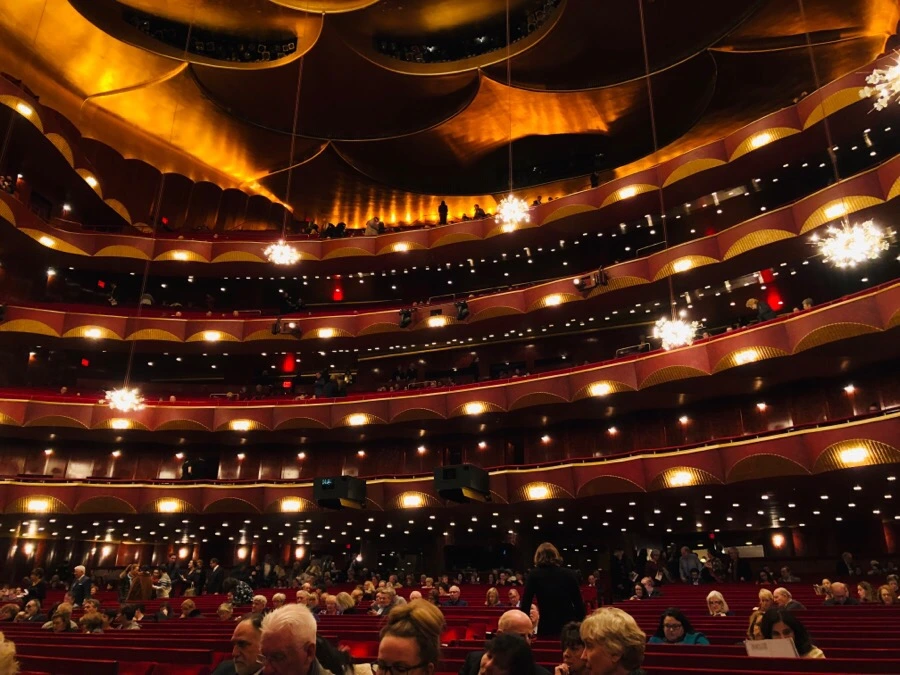 링컨 센터 지하철역에 내려 메트 박스 오피스에 가서 라스트 네임을 말하고 오페라 티켓을 찾았다. 집에서 러시 티켓 번호도 미처 확인하지 않았는데 티켓 받고 그제야 좌석 번호를 확인하고 깜짝 놀라고 말았다. 오래전 오페라 러시 티켓도 모르고 저렴한 티켓 구입해서 봤고, 우연히 러시 티켓에 대해 듣고 그 후로 러시 티켓을 구입해서 보곤 하고, 러시 티켓이 없으면 패밀리 서클 석을 구입하곤 했지만 주로 오케스트라 석 맨 뒤쪽에 앉아서 봤다. 멋진 정장 의상을 입고 온 노년 커플도 보고 신사 할아버지는 할머니에게 얼마나 특별한 대우를 하던지 놀랐어. 마치 영화 같은 장면이었다. 너무 앞 좌석이라 불편하지만 감사함으로 오페라를 봤다. 앞 좌석에서 뒤 객석을 바라보니 마치 영화 같았다. 주로 뒤쪽에서 무대 사진을 담으나 어제는 앞쪽에서 뒤를 돌아보고 미안한 마음으로 사진을 찍었다.