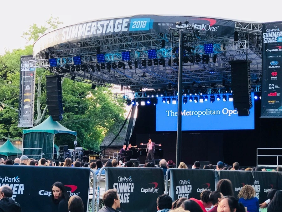 2009년 오페라 팬들을 위해 시작한 무료 오페라 공연은 뉴요커가 사랑하는 인기 많은 축제에 속하고, 뉴욕시 공원에서 여름 동안 열린다. 2018년 Latonia Moore, Mario Chang, and Joshua Hopkin 등이 주옥같은 아리아를 불렀다.