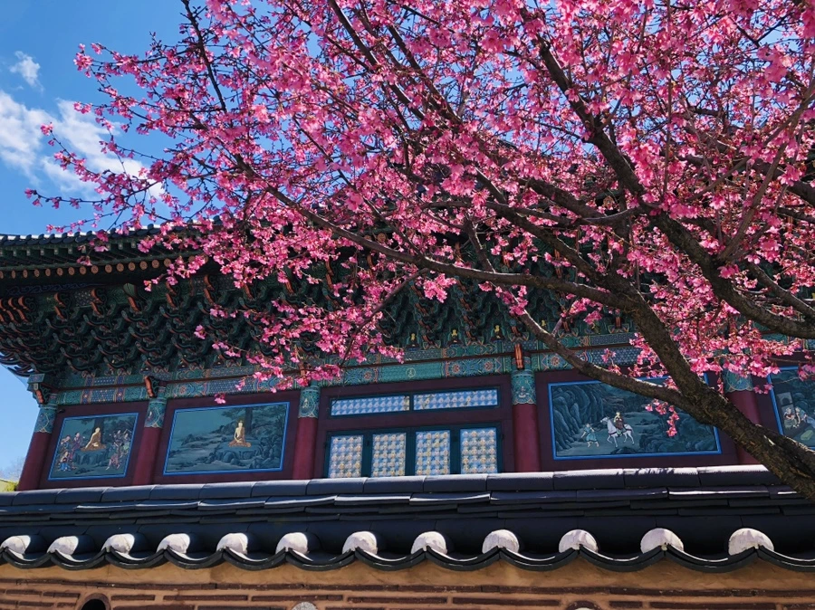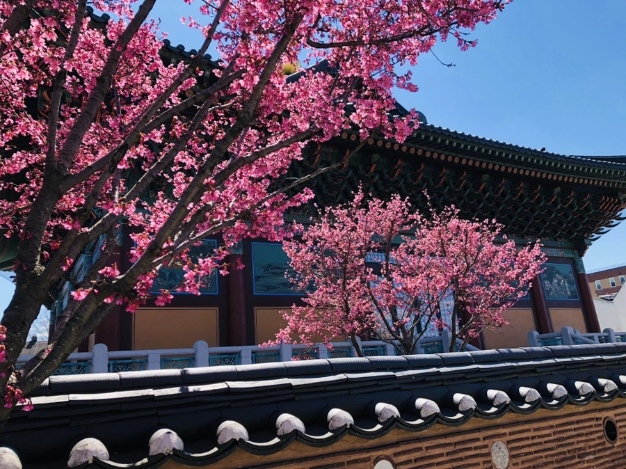 플러싱 한마음 선원에 핀 예쁜 홍매화 꽃