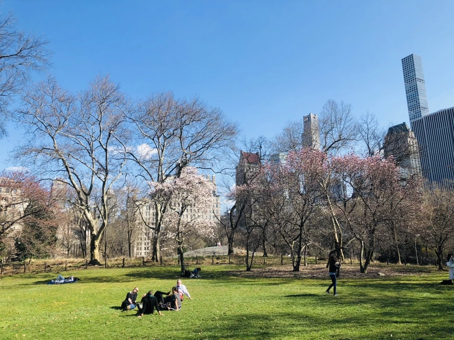 뉴욕 필 공연을 보고 나서 오랜만에 가족 셋이서 센트럴파크에 가서 산책을 했다. 어제는 겨울처럼 춥다 오늘은 화창한 봄날이라 세상 사람 모두 센트럴파크에 몰려든 것처럼 보였다. 쉽메도우에서 벌써 비키니 차림으로 일광욕을 하는 사람도 보고 여름날 센트럴파크에서 그림을 그리는 노인 화가도 보여 놀랐다. 90세 정도? 인가하는데 공원에서 그림을 그리니 얼마나 특별한 분인지 놀랍기만 하다. 공원에서 트럼펫 소리 울리고, 살사를 추고, 호수에서 보트를 타고 언제나 영화처럼 아름다운 공원에서 잠시 봄의 향기를 느꼈다. 상인들도 작년보다 훨씬 더 많아져 갈수록 센트럴파크 방문자가 많아져감을 실감한다. 날씨 좋은 날이라 아이스크림 먹으며 산책하는 사람도 있고. 점점 더 많은 사람들이 몰려올 테니 장사꾼은 얼마나 좋을까. 마차를 타고 산책하는 여행객도 보고 빨간색 운동화를 신고 달리는 사람도 보며 천천히 공원을 빠져나와 5번가를 거닐었다.