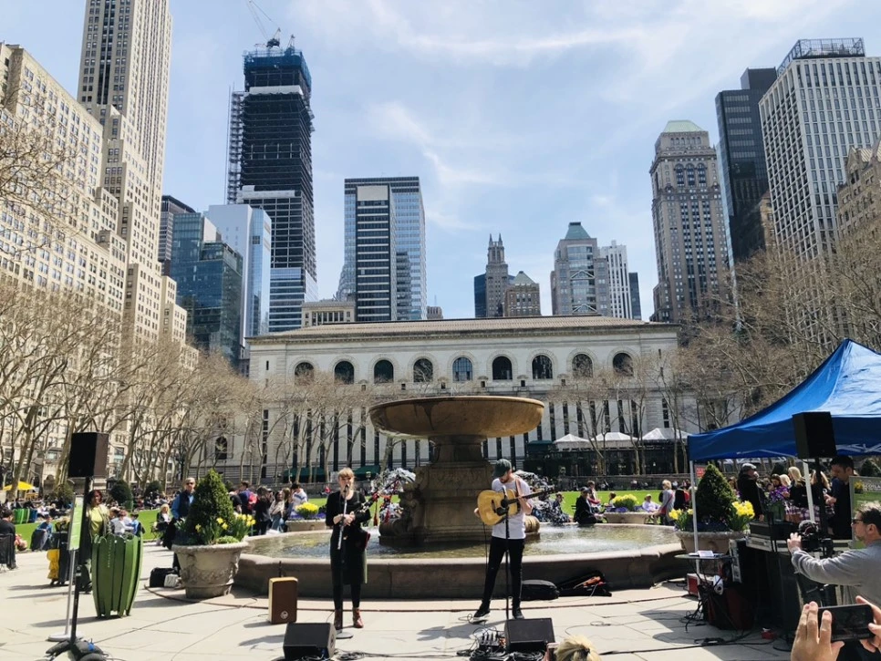 미드타운 브라이언트 파크는 황금빛 수선화 꽃과 보랏빛 팬지꽃들이 잔치를 하니 너무너무 예뻤다.