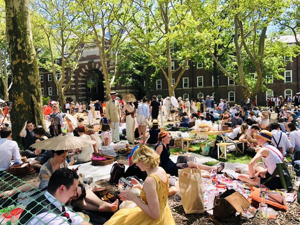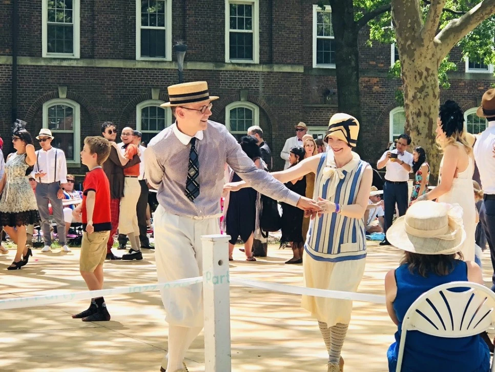 드디어 재즈 파티 Jazz Age Lawn Party가 열리는 곳에 도착했는데 음악이 흐르고 춤을 추며 행복한 사람들 보니 얼마나 좋아. 나도 그들처럼 행복해지는 거 같아서 좋은데 날 웃게 만든 할아버지를 봤어. 이마에 혹이 난 할아버지를 거기서 보리라 생각 못했지. 정말 재미있는 할아버지. 카네기 홀과 크리스티 경매장과 링컨 센터 축제에 가면 자주 만나는데 재즈 파티에서 본 것은 어제가 처음이야. 매년 재즈 파티에서 본 커플도 보았다. 정말 행복하게 보이는 커플은 무얼 하는지 궁금도 했지. 월가에서 일할까. 아니면 엄청난 유산을 받은 분일까. 작년에도 봤던 카메라맨도 보았지. 멋진 의상을 입고 오셔 사진을 촬영하는 분은 어쩌면 명성 높은 사진작가일지도 몰라. 수년 전 거버너스 아일랜드에 가서 우연히 재즈 파티를 보고 그 후 매년 찾아가서 보는데 갈수록 파티에 참가하는 인종도 다양해져 가고 어린아이들 데리고 와서 춤추기도 하고. 무더운 여름에 풀밭에서 멋진 의상을 입고 춤추는 문화라 놀랍고 무대 위 밴드는 과거 유명한 노래를 연주하고 모두 모두 흥겨운 파티 파티 파티!