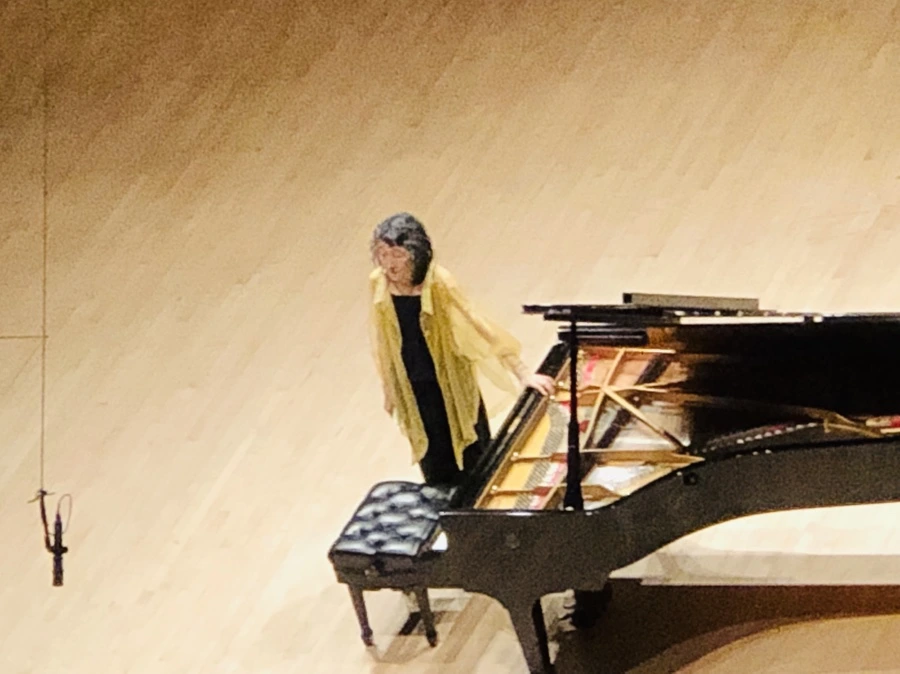 지난봄과 같은 의상을 입고 무대에 오른 일본계 피아니스트 Mitsuko Uchida