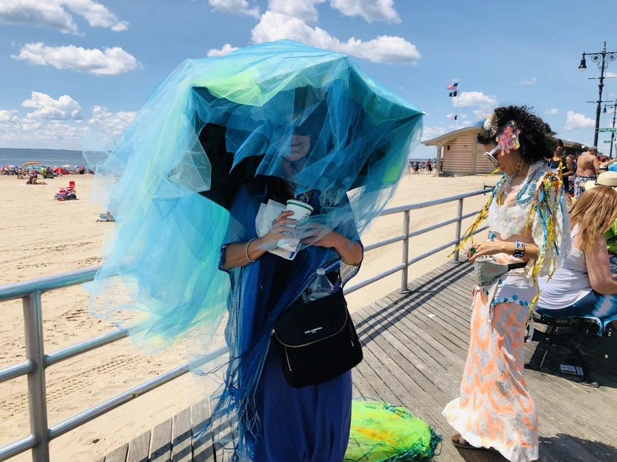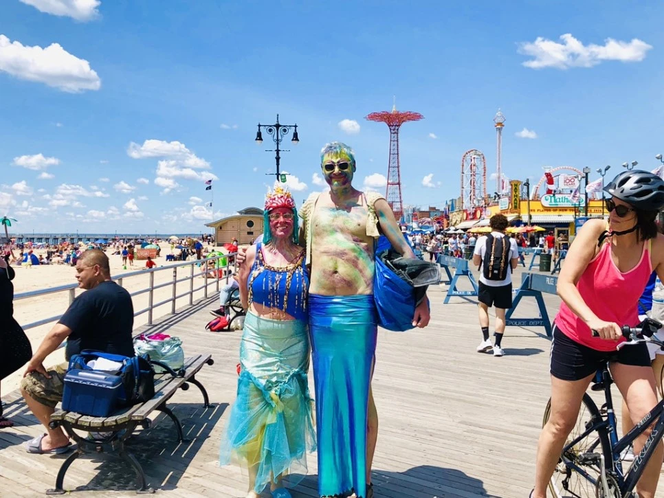 인어 공주 축제는 오후 1시부터 시작. 난 일찍 도착해 사랑하는 바닷가 구경하러 갔어. 브루클린 남쪽의 끝 코니 아일랜드는 뉴욕 지하철이 개통되기 전에는 호화 휴양지였는데 지하철이 개통하니 타임 스퀘어 역에서 약 1시간 걸리는 곳이라 지금은 서민들의 여름 휴양지로 변했어. 코니 아일랜드에 열리는 두 가지 축제가 가장 명성 높다. 새해 첫날 북극곰 클럽(Polar Bear Club) 회원들이 갖가지 의상을 입고 대서양 바다에 뛰어드는 축제와 매년 6월 열리는 인어 공주 퍼레이드.