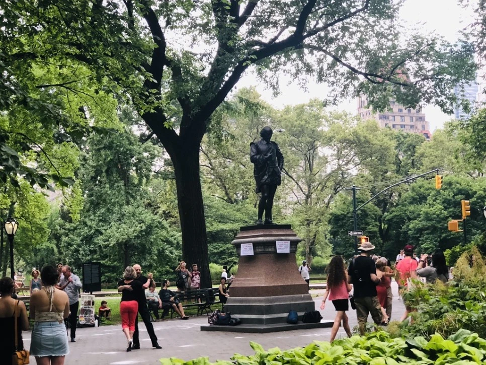매년 여름 토요일 저녁 무렵 센트럴파크에서 탱고 이벤트가 열린다. 토요일 밤까지 메트 뮤지엄이 오픈하니 방문하려다 지진 뉴스를 듣고 마음이 변해 탱고 이벤트를 보러 셰익스피어 동상 세워진 곳에서 잠시 음악과 댄스의 향기에 젖다 쉽 메도우를 지나 링컨 센터로 갔다.