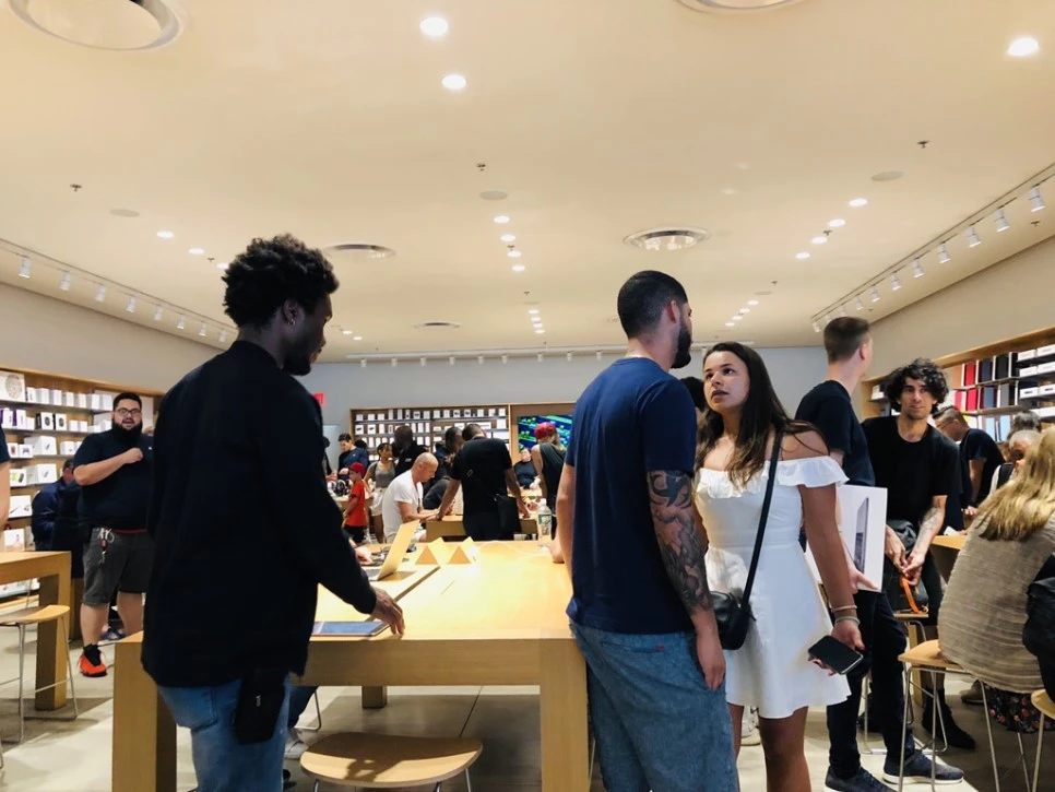 애플 스토어 직원들은 짙은 청색 셔츠를 유니폼처럼 입고 어제 입구에서 만난 직원은 20대처럼 보이는 흑인이었다. 그는 날 처음 봤다고 난 그를 봤다고 말하고. 덧붙이자면 2시 45분경 도착해 직원과 말하고 약 10분 정도 기다린 후 2시 55분 다시 찾아갔는데 난 처음 본 흑인과 나중 본 흑인과 동일 인물이라고 착각을 했다.
