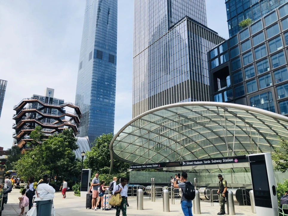 부두에서 나와 허드슨 야드를 향해 걸었다. 7호선 지하철 종점역 허드슨 야드에 뉴욕의 명소가 된 벌집 모양의 계단 빌딩 Vessel에 올라가 보고 싶었다. 딸이 보스턴에서 뉴욕에 올 적 함께 블루 바틀 커피와 아보카도 샌드위치를 먹었던 허드슨 야드 명품 매장 바로 앞에 있는 건축물. 새로운 뉴욕 명소로 자리 잡아서 미리 예약을 해야 한다고 하니 우린 예약을 하고 1시간 정도를 기다렸다.