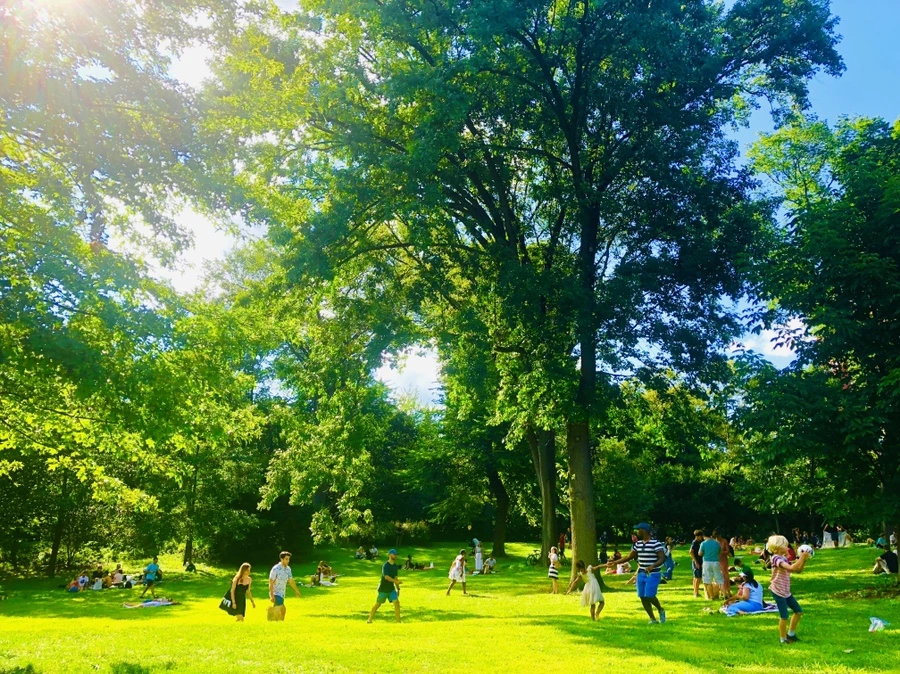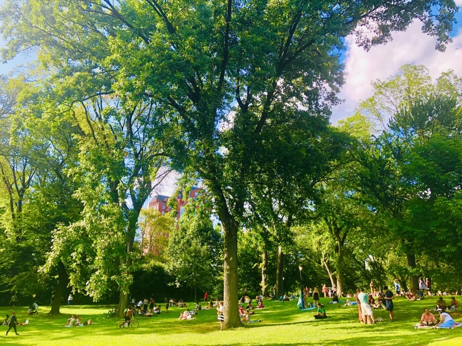 눈부시게 푸르른 하늘 하얀 구름 아래 초록 잔디밭에 재즈 축제를 보러 온 사람들이 장사진을 치고 있었다. 연인들, 친구들, 가족끼리 과일과 와인 등을 가져와 이야기 나누며 공연을 감상하고, 신생아를 안은 할아버지도 오셔 놀랐고, 어떤 사람들은 접이식 야외 의자를 가져와 편히 앉아서 재즈 공연을 보고, 깔개를 깔아 두고 누워서 책을 읽으며 음악을 듣는 사람도 보았다. 또, 젊은 커플은 내 앞에서 댄스를 추니 난 더 신이 났다. 뉴요커들이 애완견을 사랑하니 다양한 애완견들을 데리고 온 사람들도 많았다. 애완견들도 재즈 음악을 느끼나 궁금했다. 매년 여름에 열리는 무료 재즈 축제니 얼마나 좋아.
