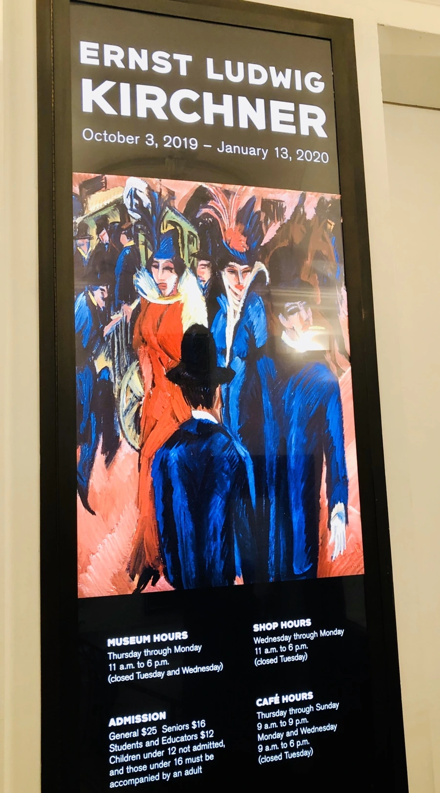 방문자들 가운데 노인들도 많고 젊은 층도 많았다. 평소와 달리 독일어 구사하는 방문객이 꽤 많았다. 심지어 지팡이를 들고 전시회를 보는 노인도 있으니 놀랍다. 거동이 몹시 불편한데 미술관에서 전시회 보는 사람들 보면 놀랍지. 방문객들이 꽤 많아 키르히너 생애에 대해 작은 글씨로 적힌 벽은 자세히 보지도 못했다.