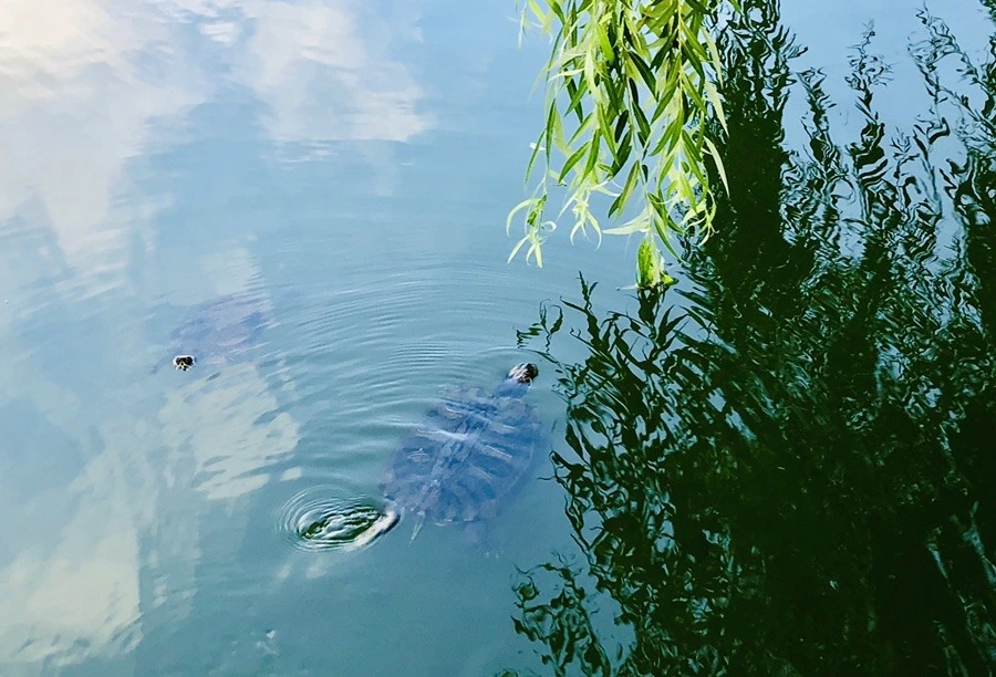 초록빛 호수에 찾아가서 휴식을 했지. 매일 봐도 좋은 호수. 마음이 잠잠해진다. 바다와 호수를 보면 그냥 기분이 좋다. 초록빛 호수에 파란 하늘과 하얀 구름으로 멋진 집을 지었어. 호수에 있는 집은 얼마나 예쁜가. 마음이야 무얼 못해. 혼자 상상만 하지. 수양 버드나무 가지 치렁치렁 늘어진 초록빛 호수에 거북이가 놀러 오면 예쁜 그림이 된다. 초록빛 호수 보면서 예쁜 집도 짓고 그림도 그리고 그래서 마음이 즐거워진다.