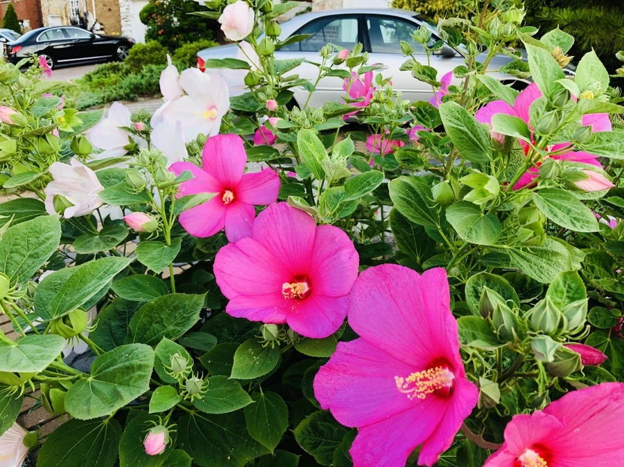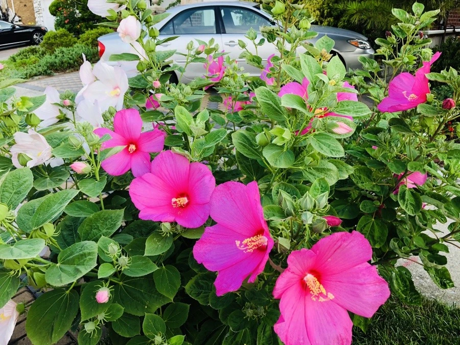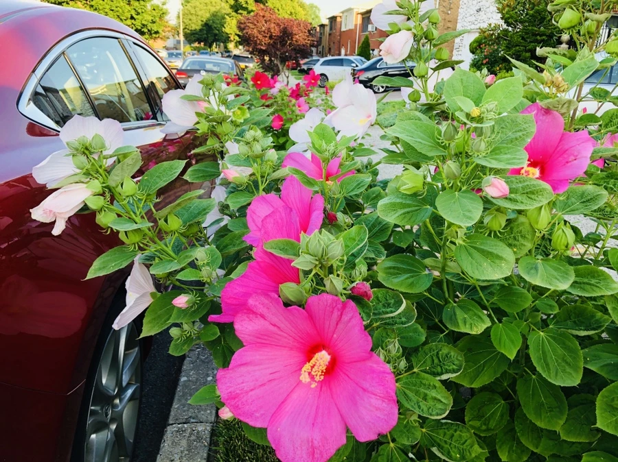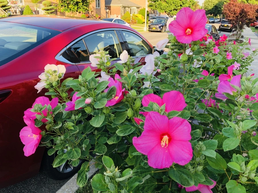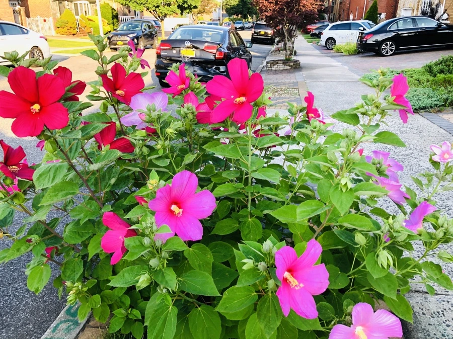 플러싱 동네에서 흔히 볼 수 있는 하와이 무궁화 꽃은