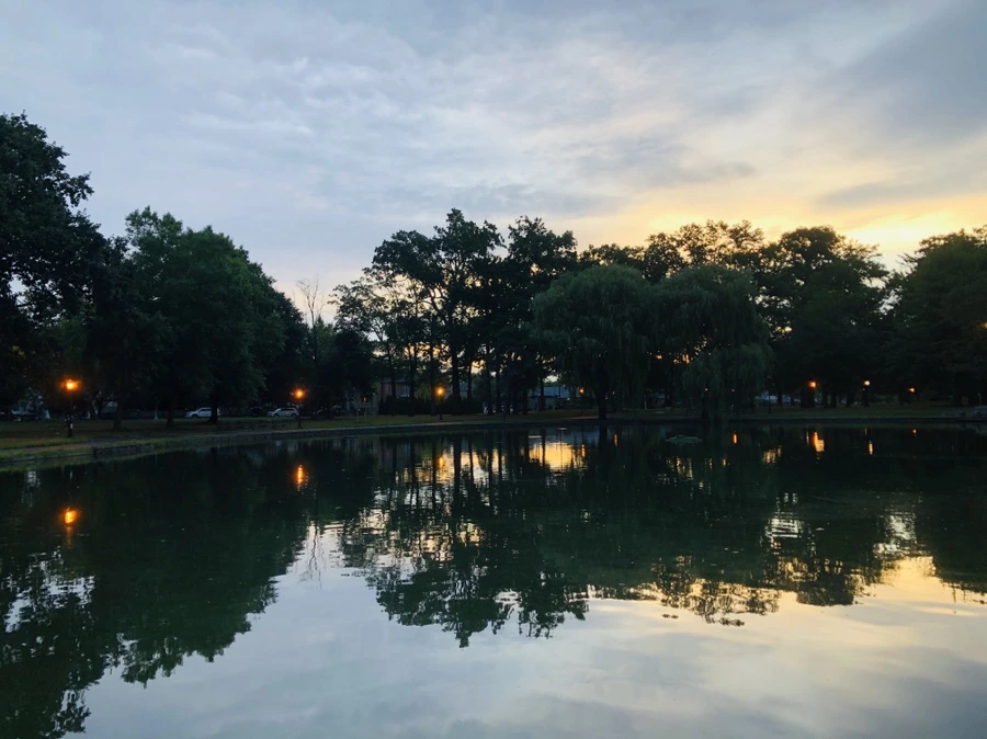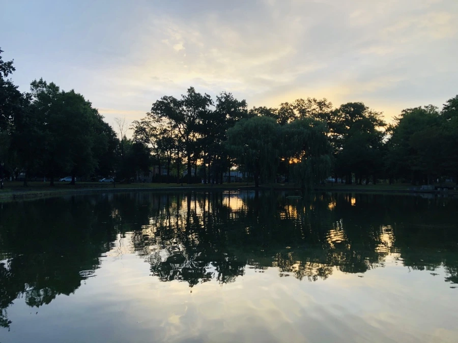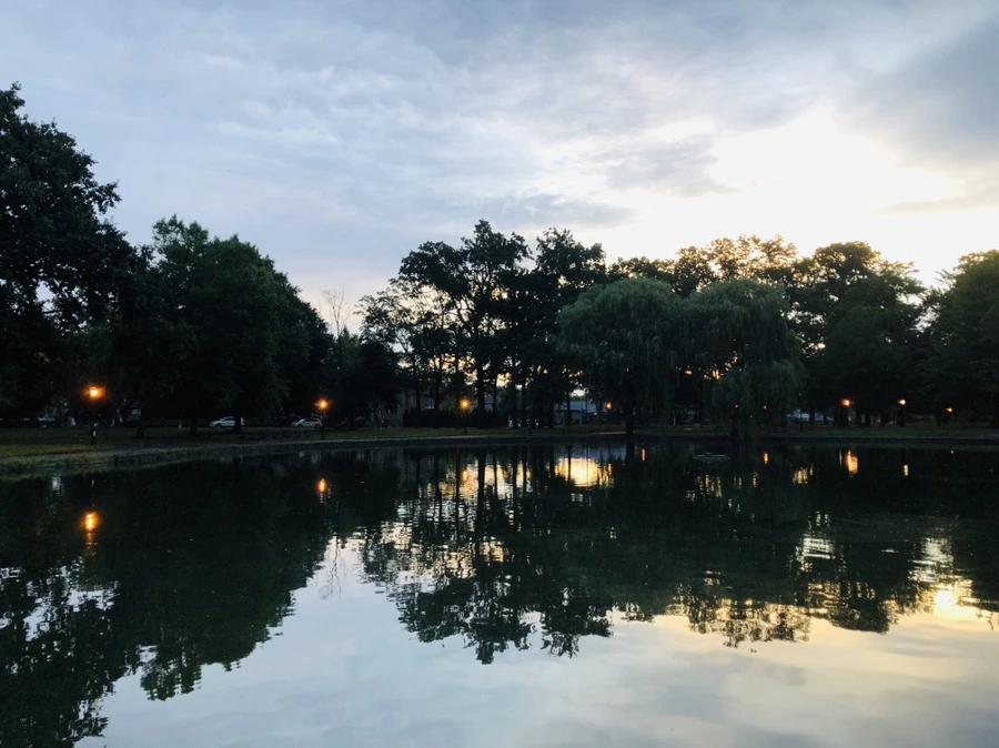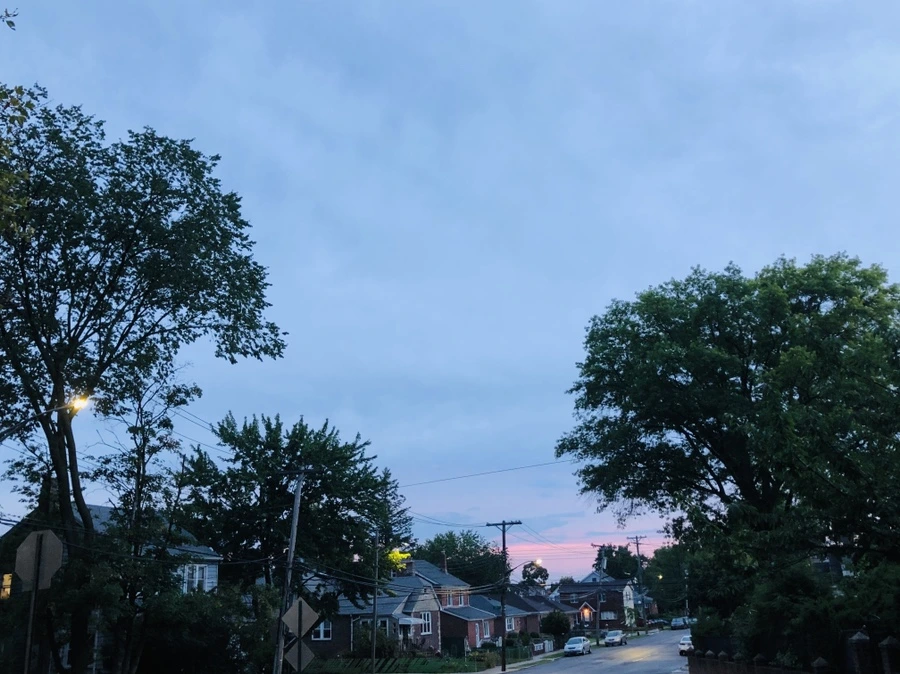 가로등 켜진 숲 속에 여명의 빛이 울려 퍼지더라.