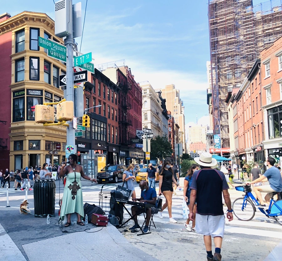 나의 아지트에서 핫 커피 한 잔 마시고 지하철을 타고 유니언 스퀘어에 갔다. 토요일 오후 그린 마켓도 활기찬 분위기라 좋았다. 링컨 동상이 세워진 유니온 스퀘어 파크에서는 재즈 음악이 들려오고 그린 마켓이 열리는 코너에서도 음악이 들려왔다. 오랜만에 보는 활기찬 풍경과 거리 음악가 공연이 날 흥겹게 했다.