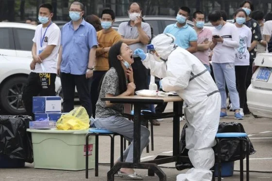 [우한=AP/뉴시스]중국 후베이성 우한시에 있는 한 공장에서 15일 노동자들이 신종 코로나바이러스 감염증(코로나19) 검사를 받고 있다.2020.05.19.