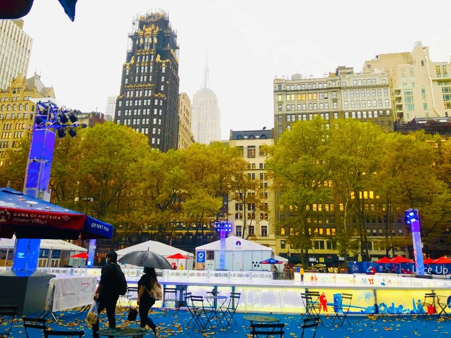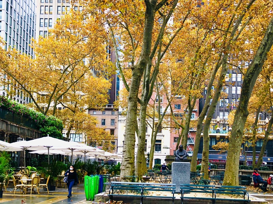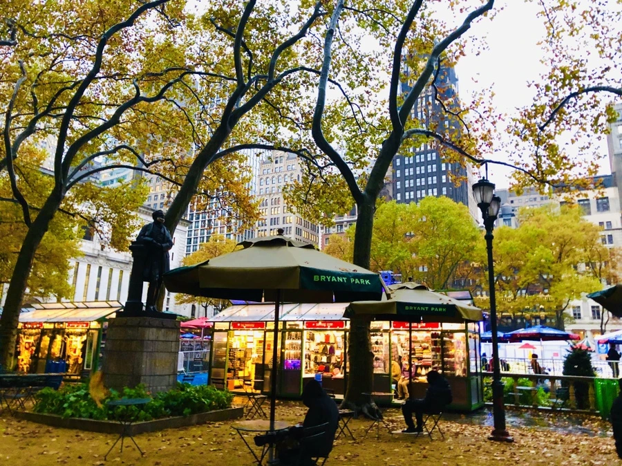 가을비 내리는 날 종일 브라이언트 파크에서