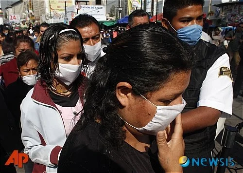 2009년 신종플루가 첫 발병한 멕시코엥서 마스크를 쓴 사람들이 병원에 들어가기 위해 차례를 기다리는 모습./사진=뉴시스