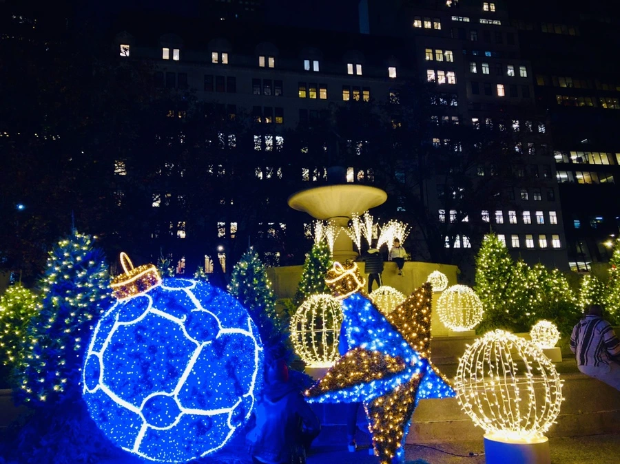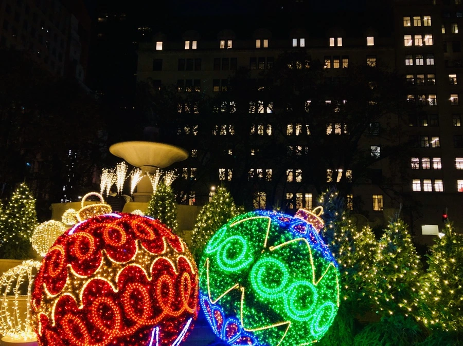 플라자 호텔 퓰리처 분수 앞 홀리데이 장식을 보며
